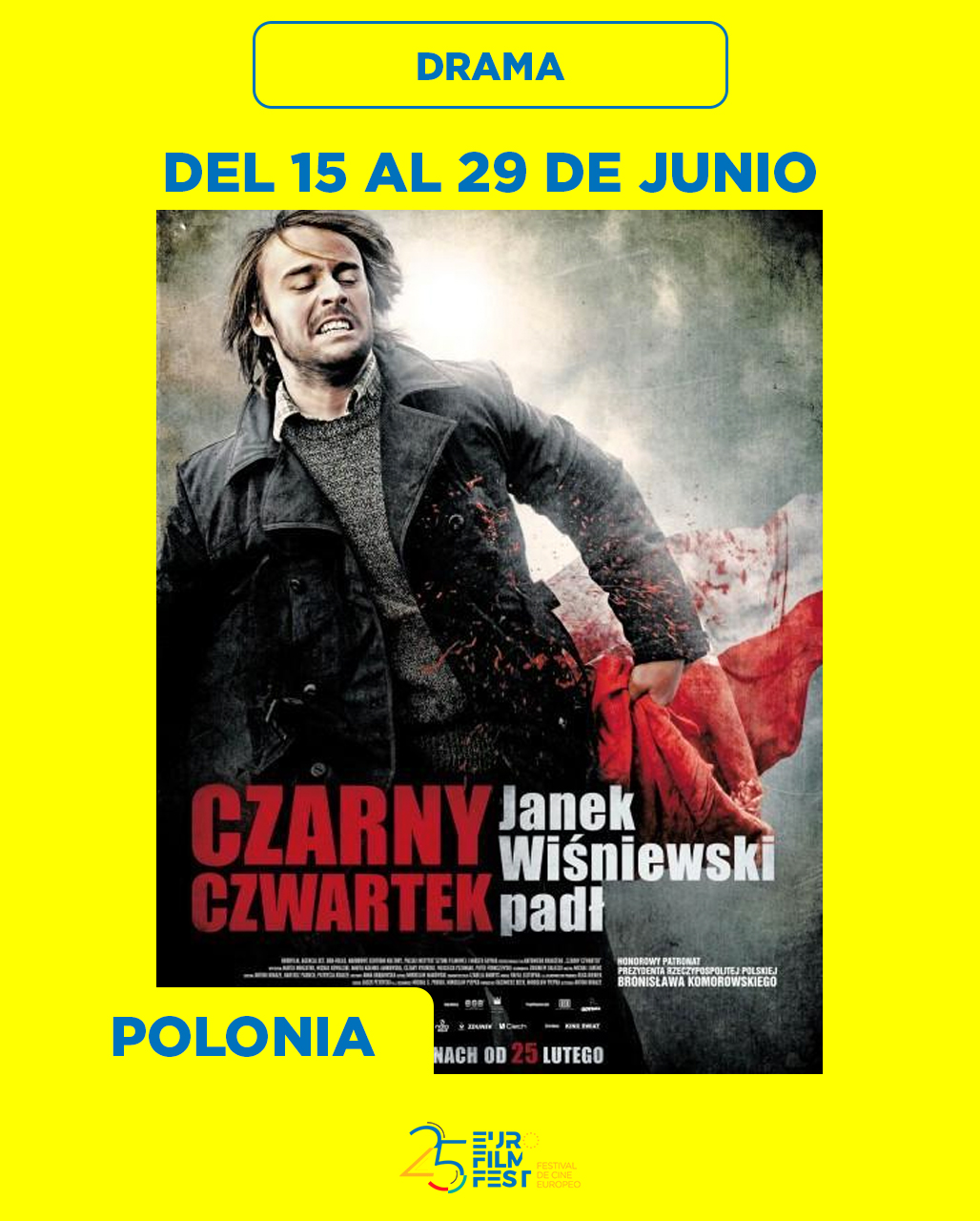En el marco del 25º Festival de Cine Europeo, se proyectará la película polaca'' Jueves Negro. Arde Polonia” dirigida por Antoni Krauze. La película es una reconstrucción de los hechos que tuvieron lugar el jueves 17 de diciembre de 1970 en Gdynia. "Jueves negro" cuenta la historia de un trabajador de un astillero, Brunon Drywa, y su familia, la película utiliza "La balada de Janek Wiśniewski" interpretada por Kazik Staszewski.