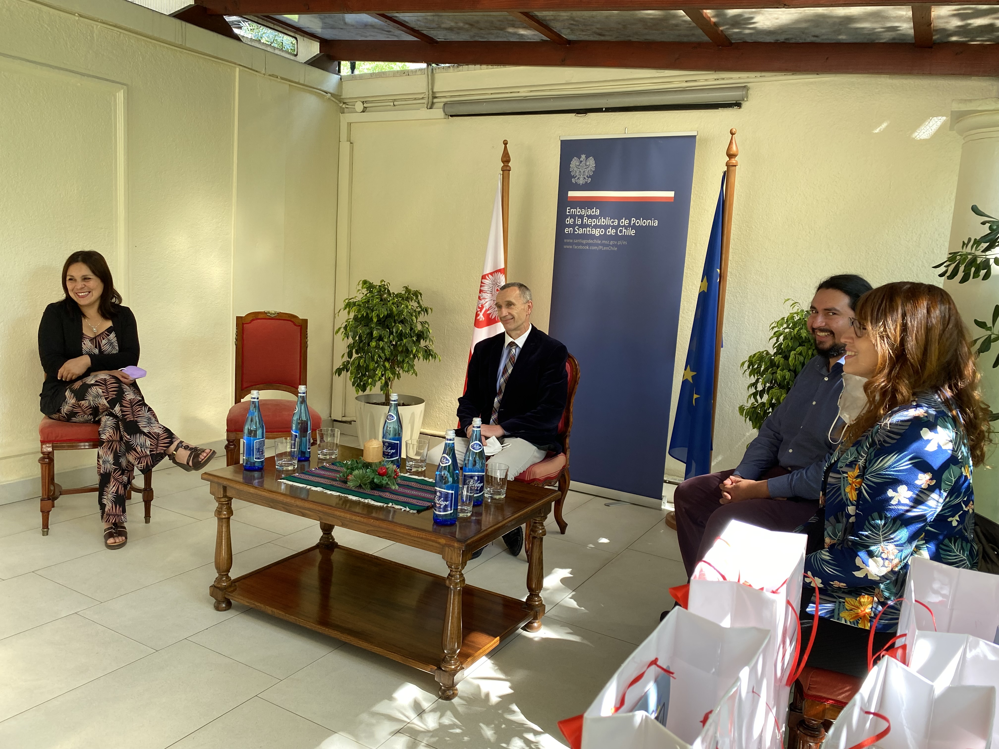 El 3 de diciembre, los alumnos de la Escuela República de Polonia de Batuco, que se destacaron en sus estudios y deporte, visitaron la Embajada de Polonia en Santiago. Siguiendo la tradición, al final del año escolar algunos alumnos seleccionados de cada curso, junto con sus profesores, vinieron a conocer al Embajador Jacek Gawryszewski. El Embajador habló a los niños de las costumbres navideñas polacas y familiarizó a nuestros pequeños invitados con la naturaleza del trabajo de la Embajada. Los regalos, la diversión en el jardín y un delicioso pastel de frutas elaborado especialmente para esta ocasión por el Señor Marek, despertaron alegría.