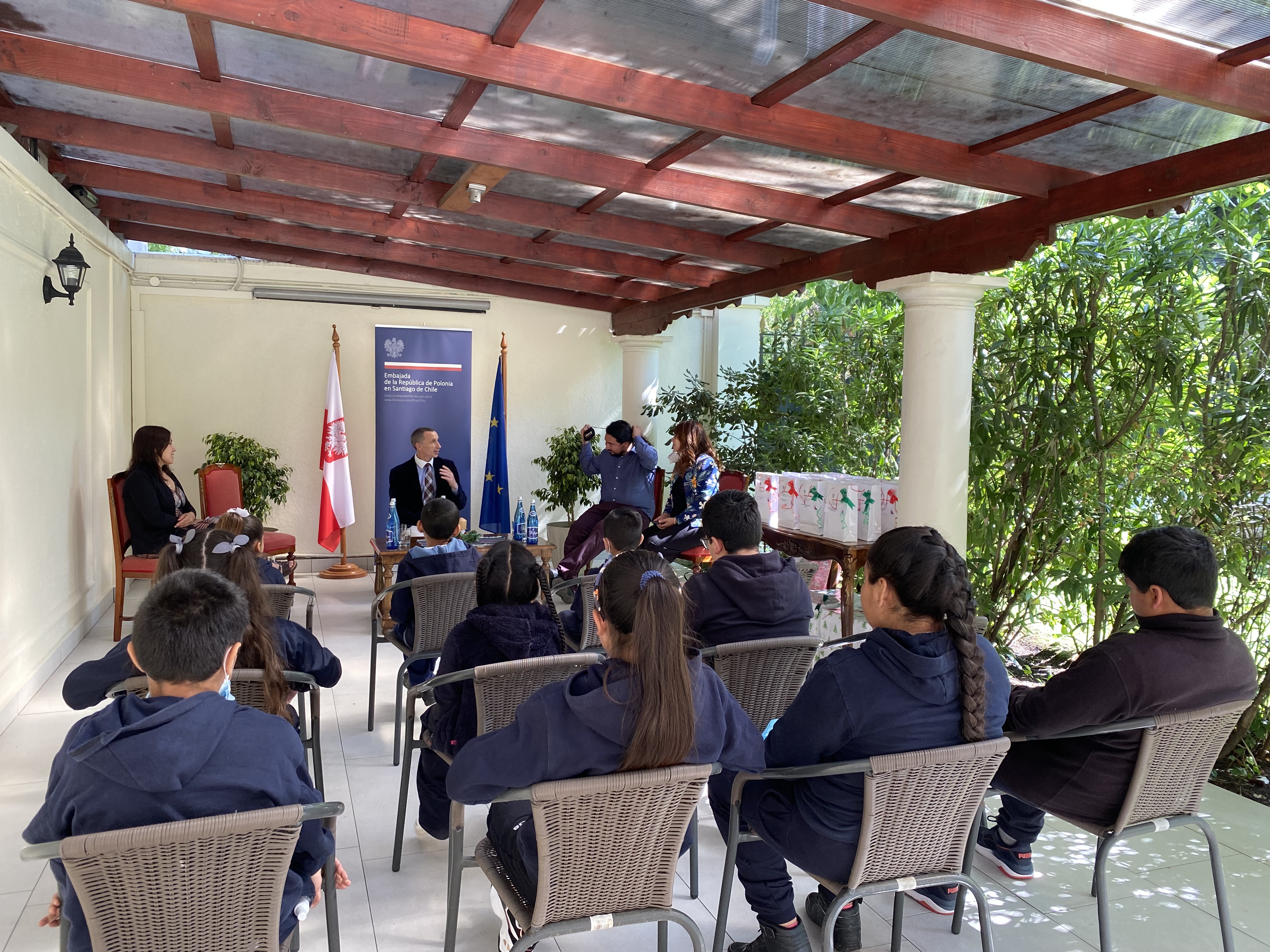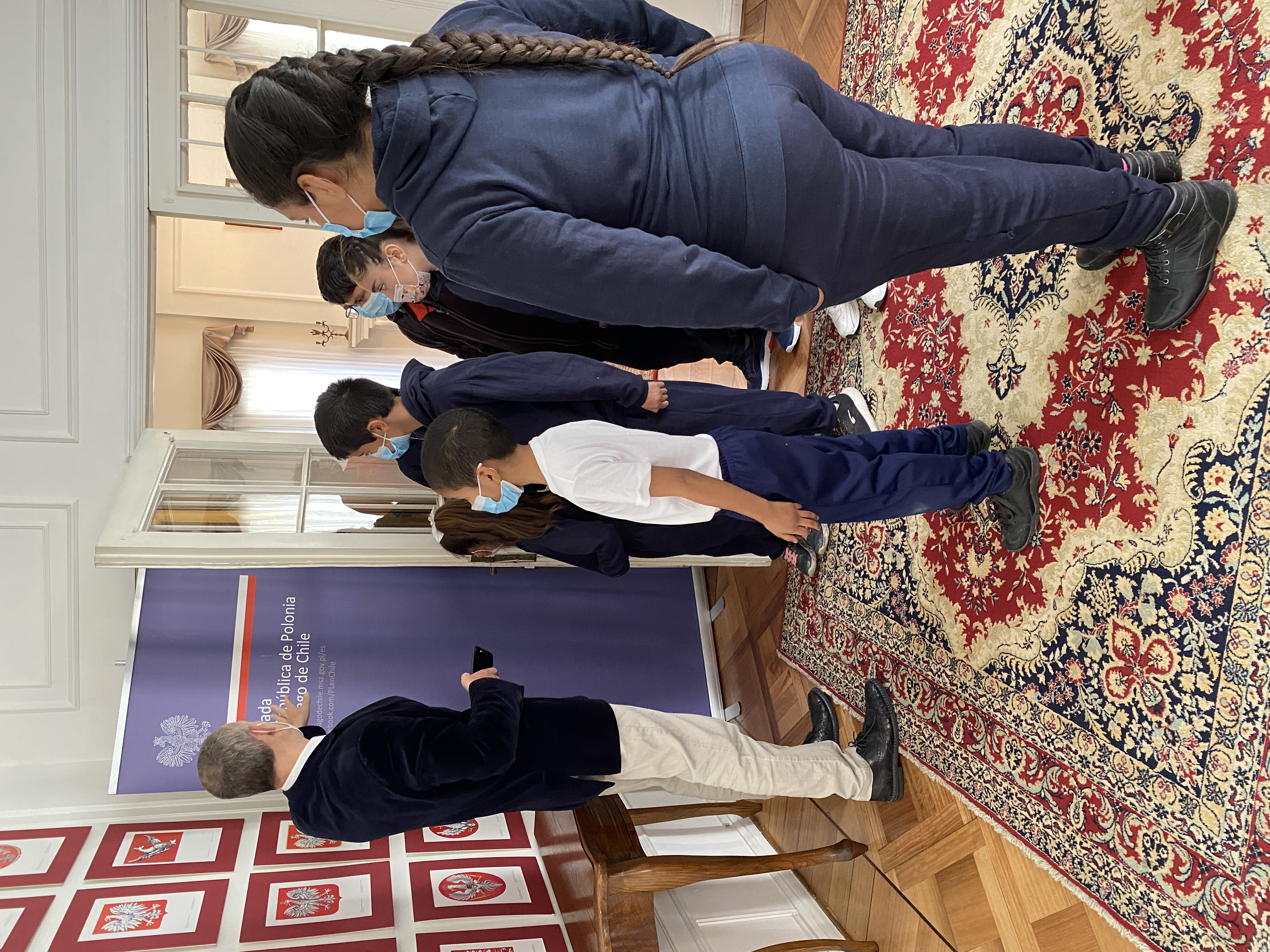 Alumnos de la Escuela República de Polonia en Batuco con una visita en la Embajada de Polonia en Santiago.