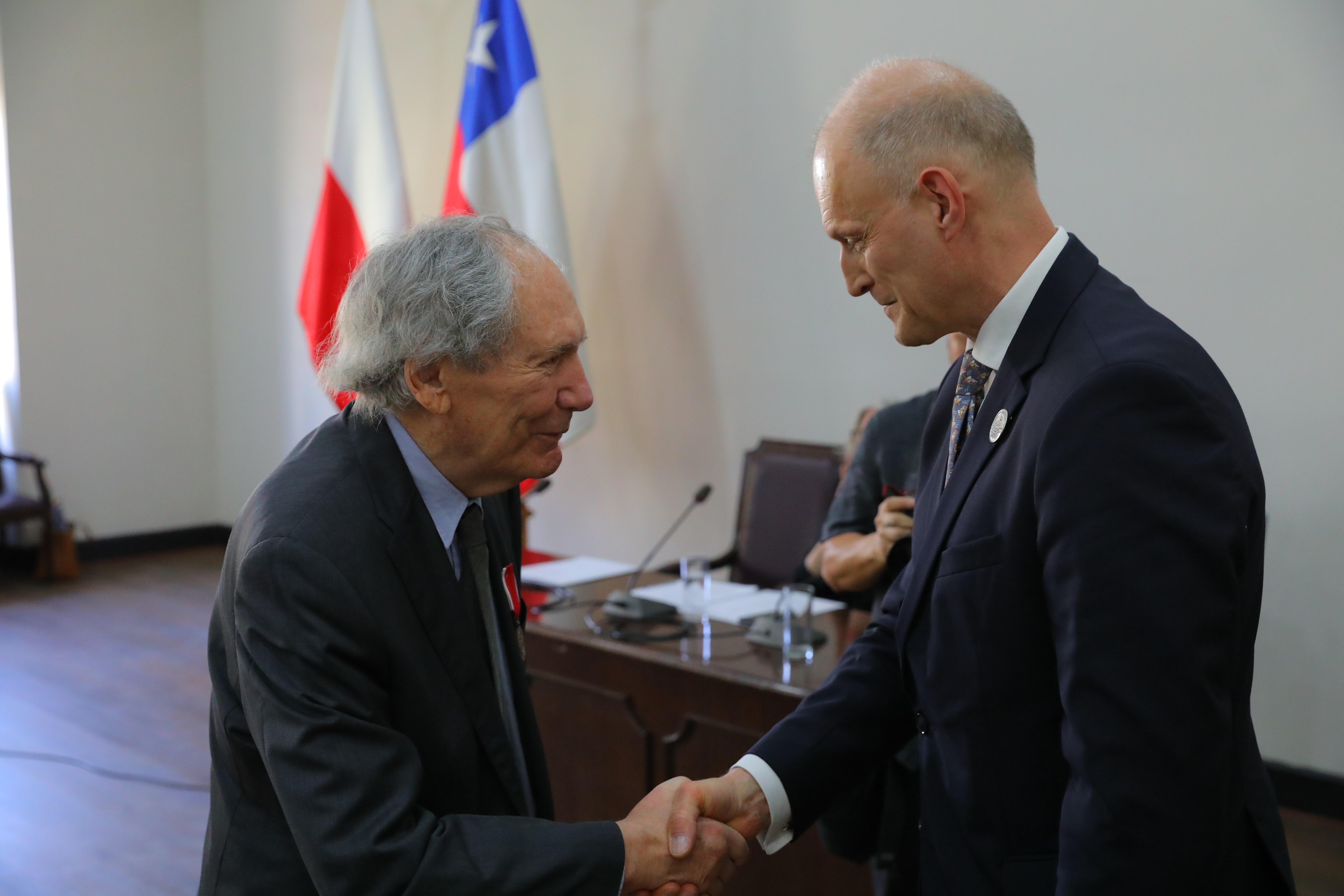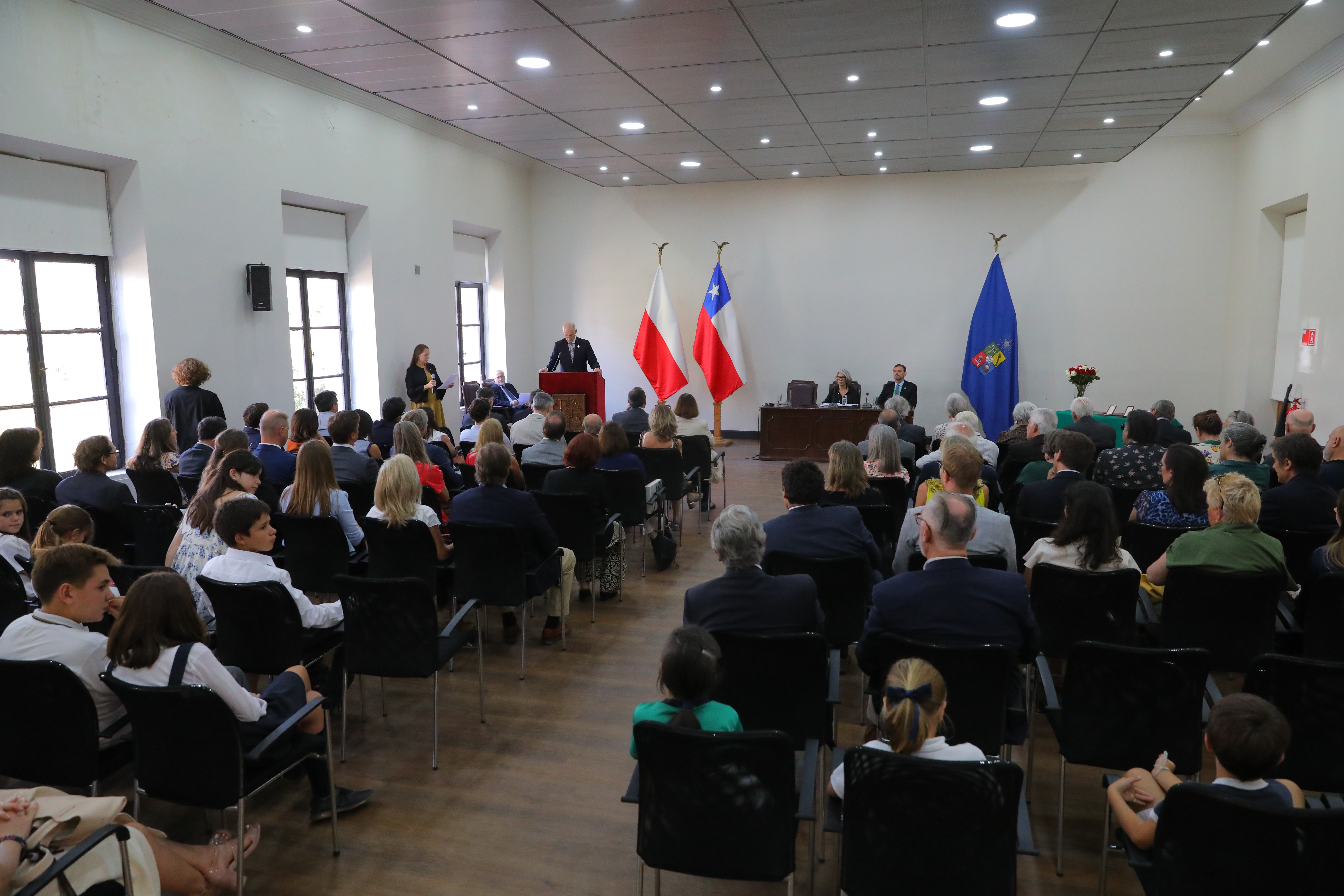 Durante la ceremonia en la Universidad de Chile, el subsecretario entregó un reconocimiento por méritos especiales a los descendientes del científico polaco Ignacy Domeyko.
