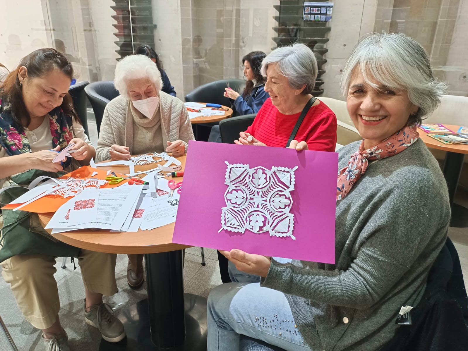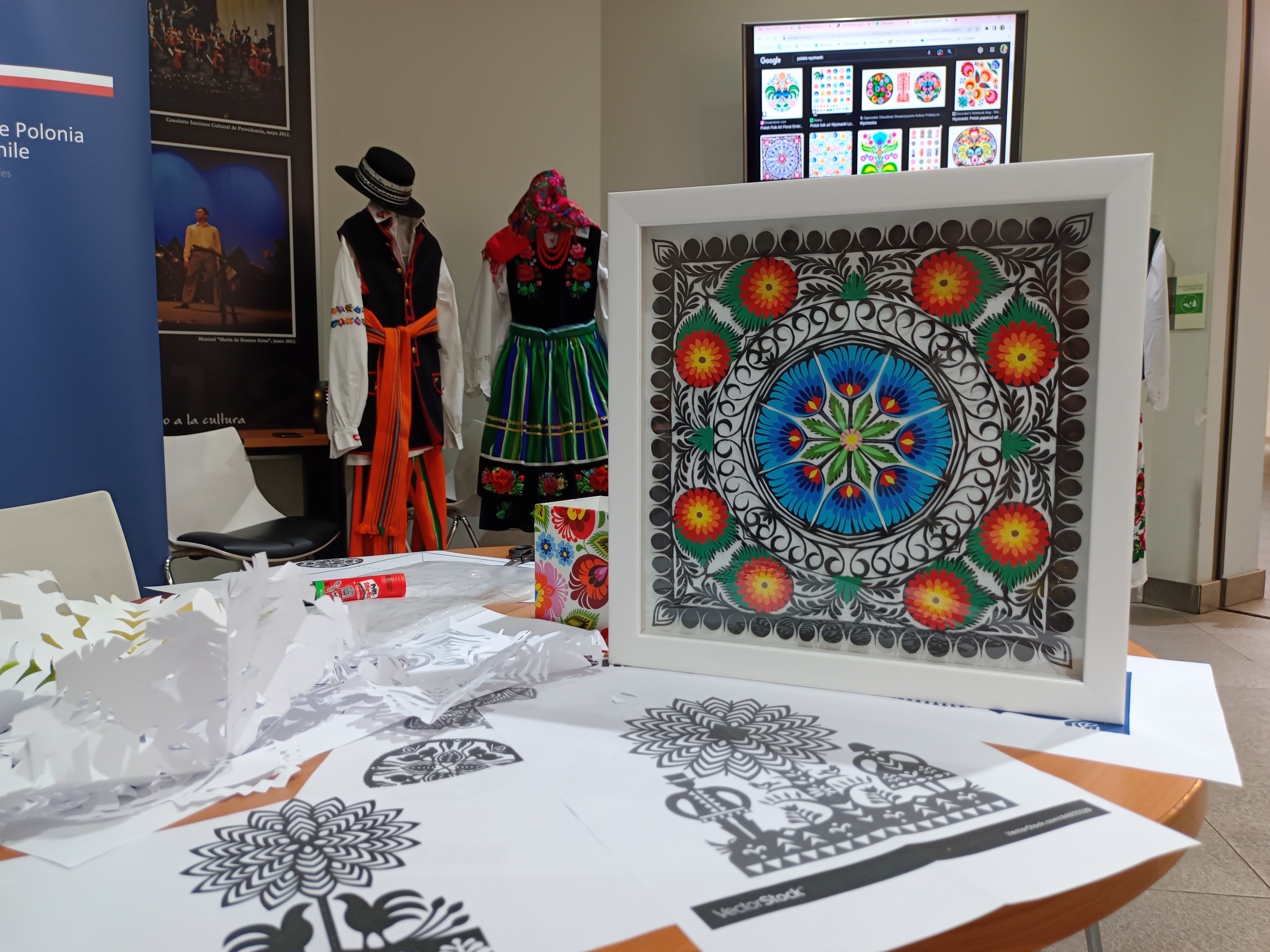 Durante el taller de corte de papel, los chilenos pudieron familiarizarse con varios patrones de corte de papel polaco. El evento fue una oportunidad para presentar la riqueza del arte popular polaco y hacer un recorte seleccionado. Felicidades a los que aceptaron el reto.