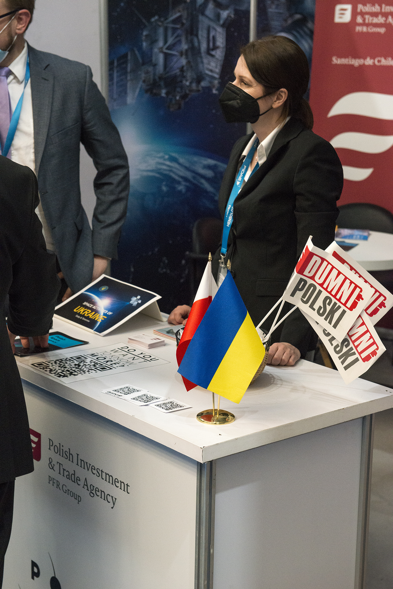 Gracias a la cooperación de la Agencia Espacial Polaca con su homólogo ucraniano y a la ayuda de las misiones diplomáticas de ambos países, la Agencia Espacial Ucraniana (SSAU) también pudo presentar su oferta en el stand.