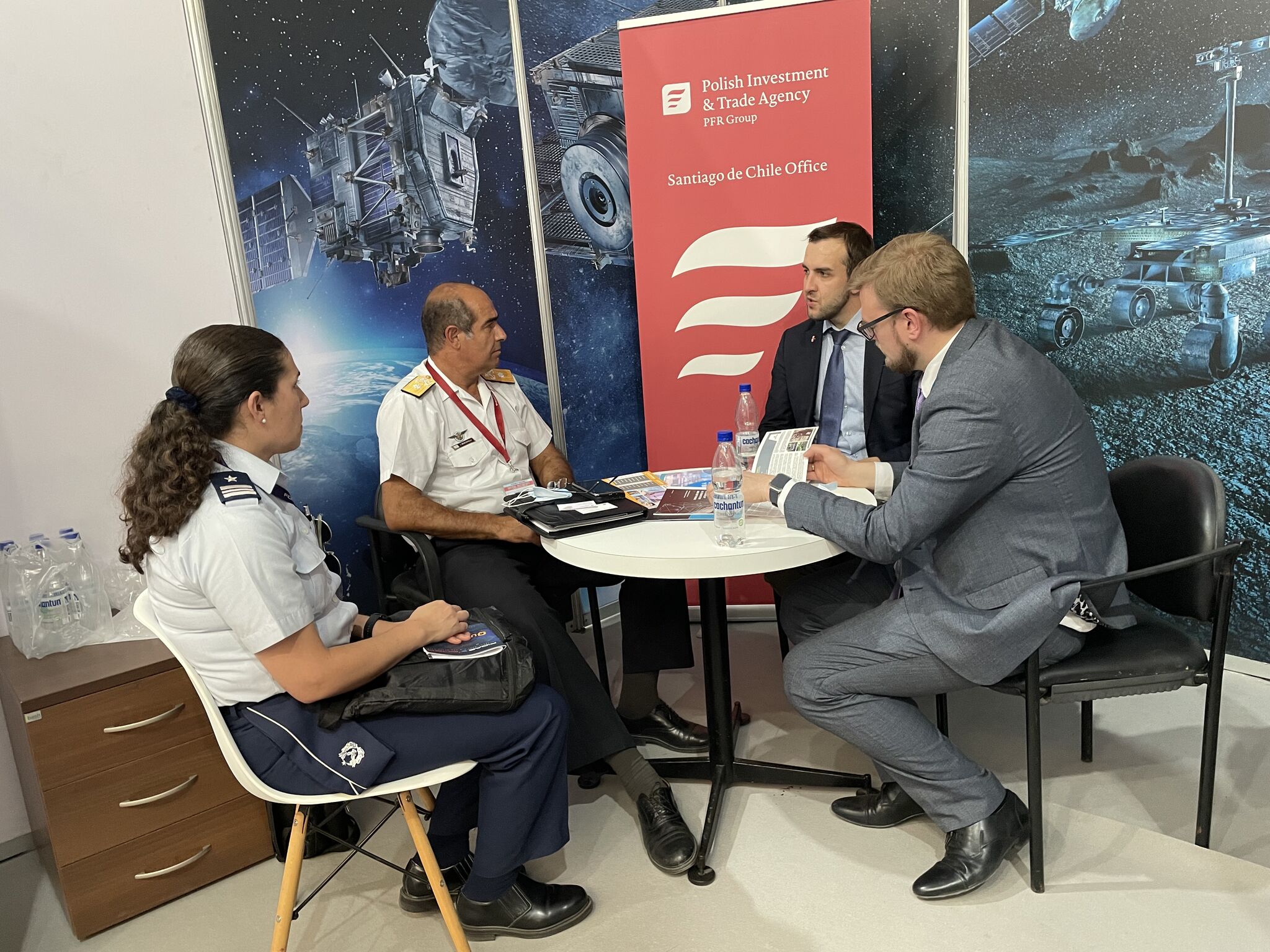 El 6 de abril tuvimos el placer de recibir en la Embajada a una delegación de la Agencia Espacial Polaca (POLSA), encabezada por su presidente, el profesor Grzegorz Wrochna. El motivo de la visita a Chile fue, entre otros, una reunión con la dirección del Observatorio Europeo Austral (ESO) y la participación en la 22ª edición de la Feria Internacional del Aire y del Espacio (FIDAE). El stand polaco en este mayor evento de exhibición en la industria de la aviación y el espacio en América del Sur fue preparado por la Oficina de Comercio Exterior en Santiago de la Agencia Polaca de Comercio e Inversión.