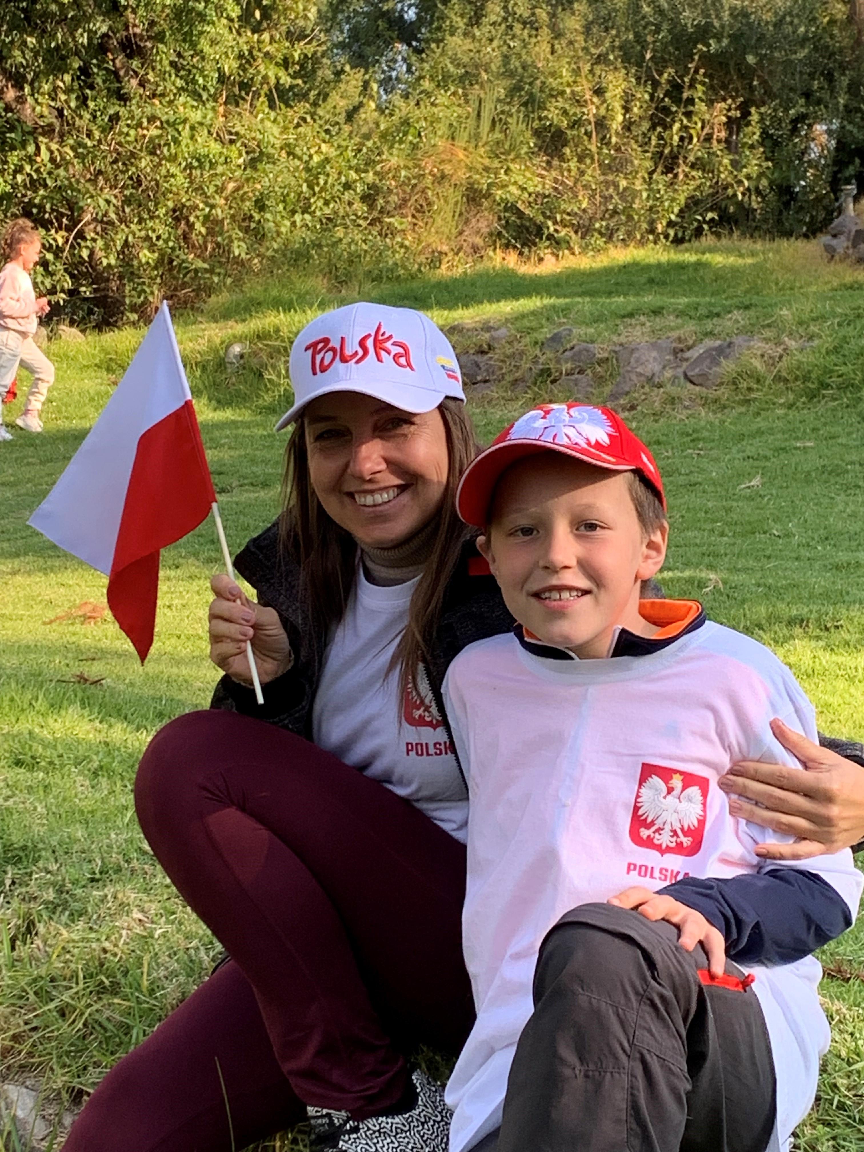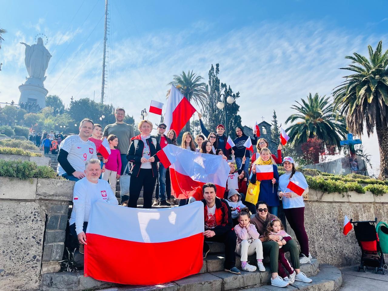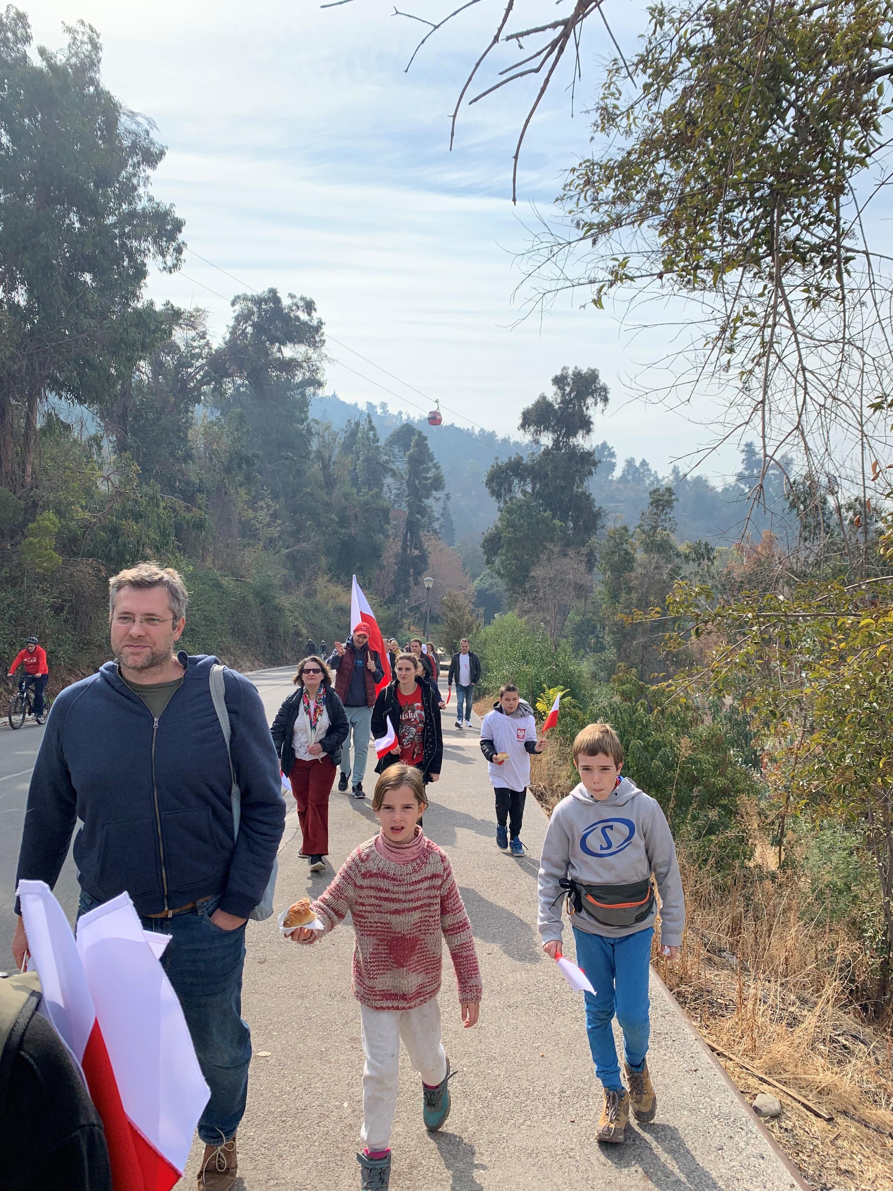 W tym roku Polacy zamieszkali w Chile wraz ze swoimi rodzinami świętowali Dzień Flagi RP i Dzień Polonii i Polaków za Granicą porzez tradycyjne wejście na Wzgórze Św. Krzysztofa w Santiago i wspólny piknik w Ogrodzie Mapulemu. Już trzeci raz mieliśmy okazję w przeszło godzinnym marszu powiewać polskimi flagami i zrobić sobie wspólne zdjęcie przy pomniku Papieża Jana Pawała II na szczycie wzgórza. W wydarzeniu wzięły udział całe rodziny polsko-chilijskie, cieszy nas ogromnie, że nie zabrakło dzieci, które dumnie niosły polską flagę. Dziękujemy kopalni Sierra Gorda SCM za sfinansowanie pikniku, na którym królowały pierogi i jagodzianki.