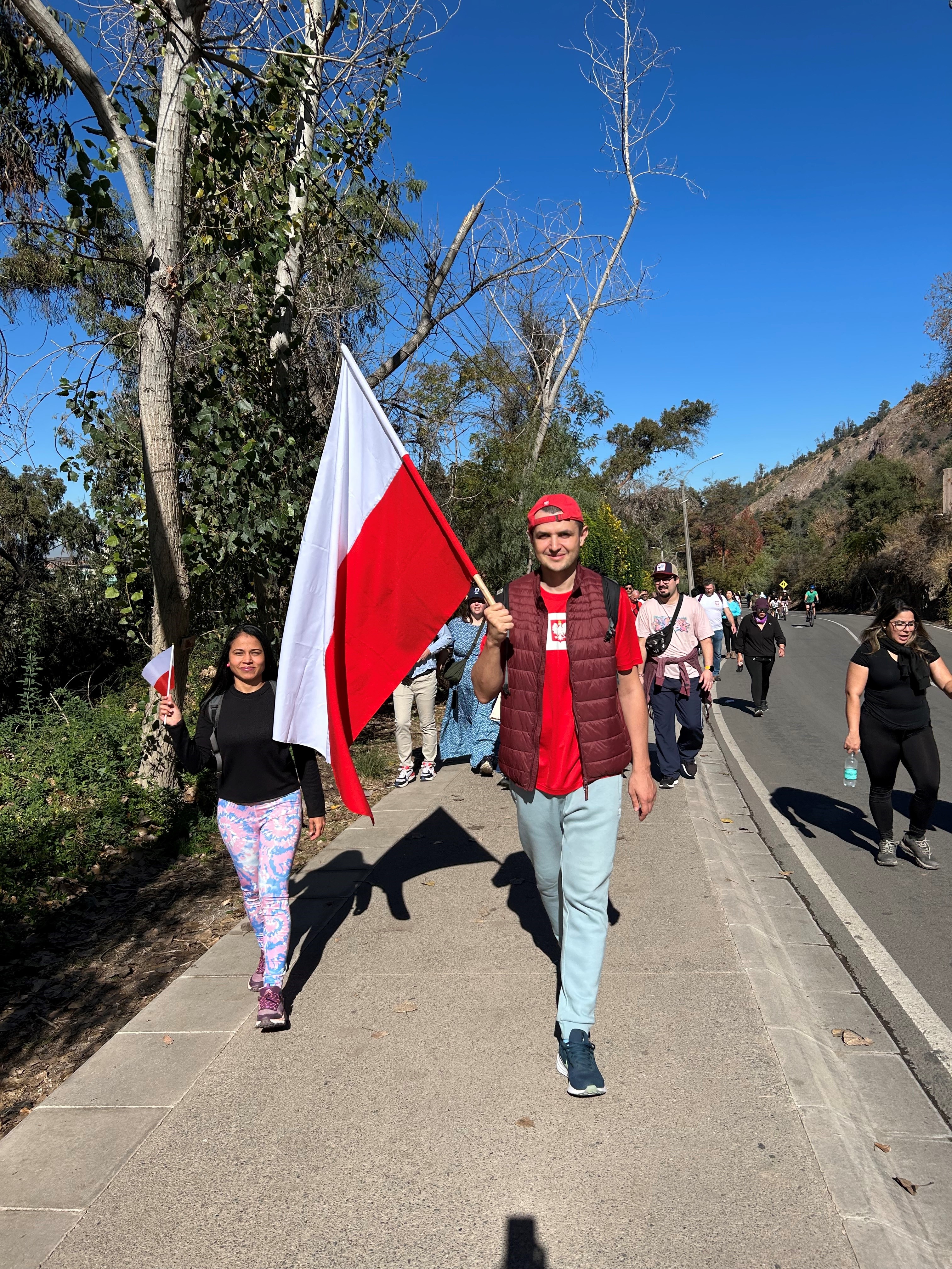 Wycieczkę rozpoczęliśmy od wędrówki na wzgórze Św. Krzysztofa, skąd mogliśmy podziwiać piękne widoki na Santiago, a następnie udaliśmy się na piknik do Ogrodu Mapulemu. Powiewajaca polska flaga wzbudzała zainteresowanie Chilijczyków. Biało-czerwone stroje, pyszne pierogi, jagodzianki, rozmowy po polsku oraz dziecięce zabawy sprawiły, że atmosfera na pikniku była naprawdę polska.