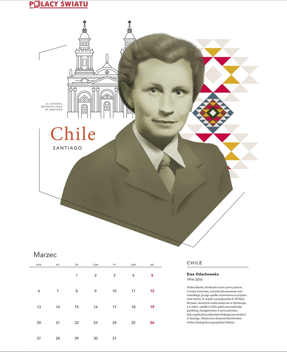W kalendarzu ‘’Polscy medycy światu 2023” na uwagę zasługuje marzec- miesiąc poświęcony Pani Ewie Odachowskiej, polskiej lekarce, która większość swojego życia spędziła w Chile.