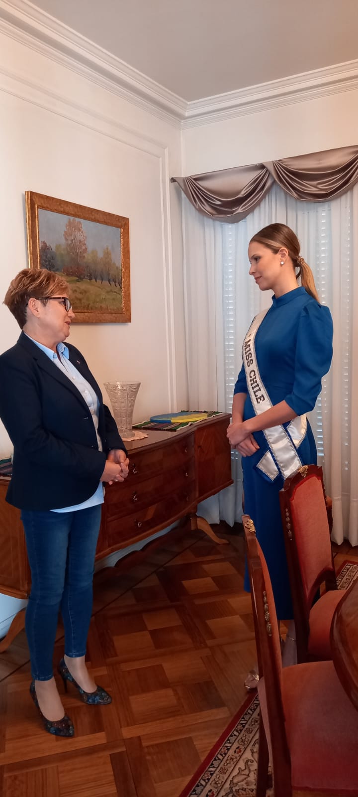 Miss Chile, która na co dzień jest pilotem, pragnie jak najwięcej dowiedzieć się o Polsce i Polakach. Na spotkaniu z Wicekonsul RP Panią Grażyną Kłosiewicz poruszane były tematy z zakresu polskiej gospodarki, kultury, języka i polskich obyczajów.