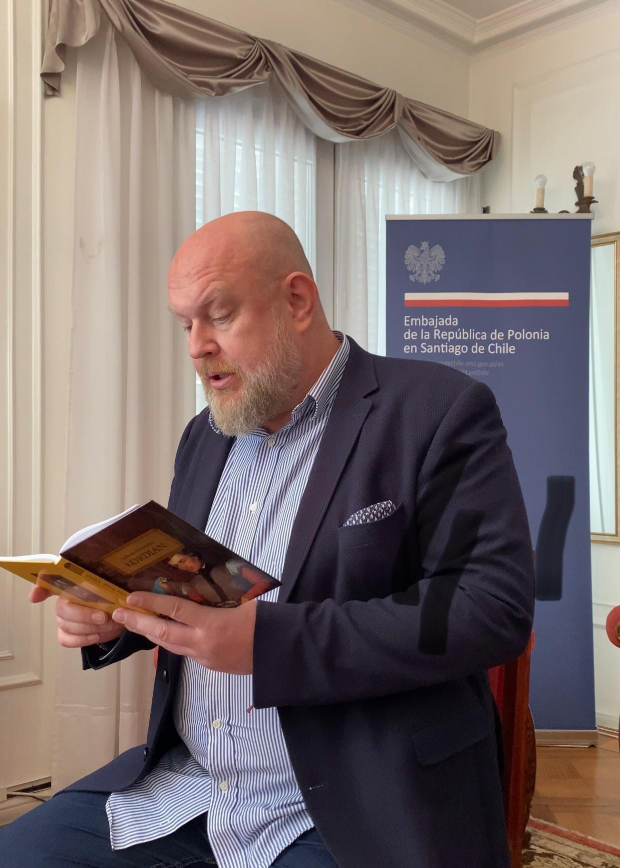 W sobotę, 7 września w Ambasadzie RP w Santiago obyło się spotkanie w ramach 13 edycji ,,Narodowego Czytania”. Fragmenty ,,Kordiana” Juliusza Słowackiego czytali przedstawiciele chilijskiej Polonii, dzieci z Polskiej Szkoły w Santiago oraz Chilijczycy uczący się języka polskiego. Spotkanie poprowadził Konsul RP Piotr Loroch, który podkreślił wagę uczestnictwa dzieci w wydarzeniu oraz podziękował rodzicom i nauczycielom za wysiłek wkładany w naukę języka polskiego i wzbudzanie zainteresowania polską literaturą u młodego pokolenia.