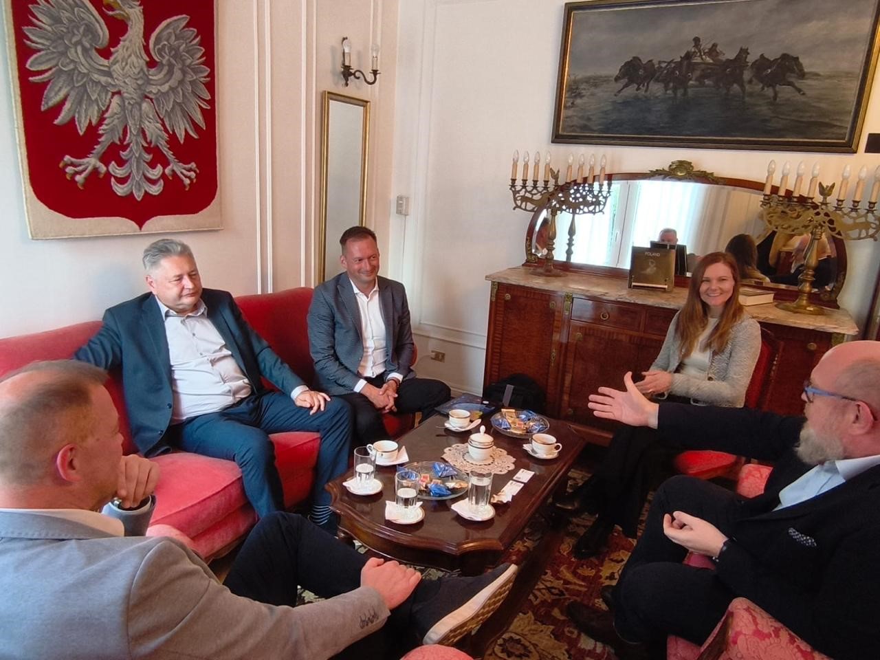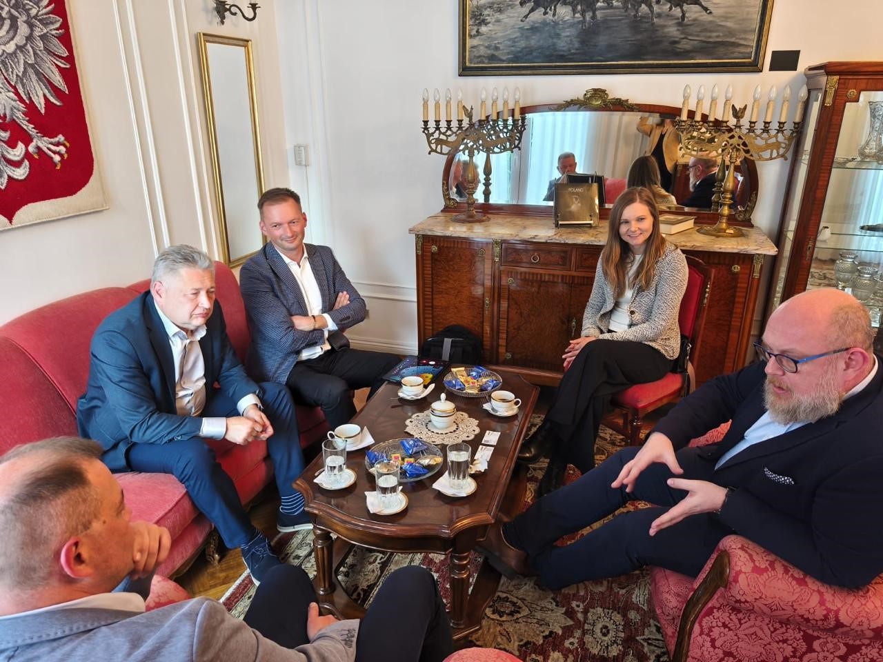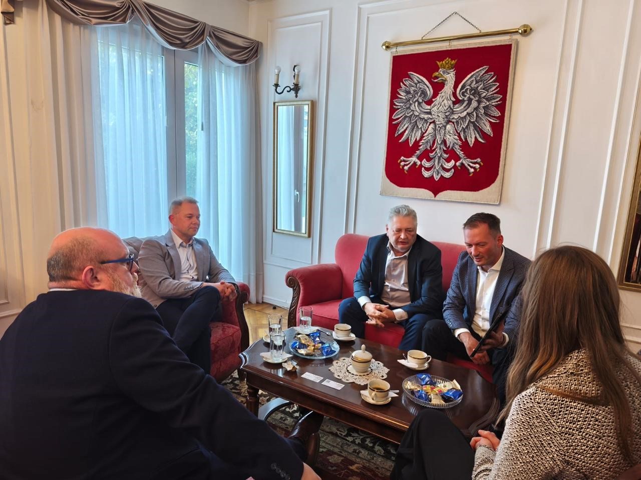 Chargé d'affaires a.i. Piotr Loroch spotkał się z przedstawicielami Sybet International Sp. z o.o., założycielem i głównym udziałowcem Grzegorzem Gałowym, a także z Bartoszem Jakóbińskim, Prezesem Sevitel Sp. z o.o., polskich firm będących liderami rozwiązań telekomunikacyjnych i bezpieczeństwa w ekstremalnych warunkach.