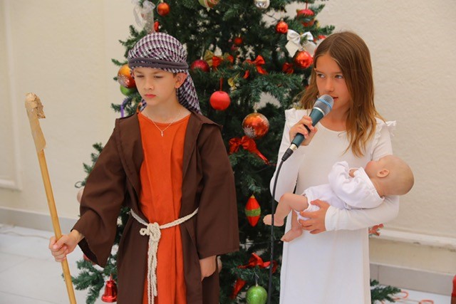 Dzieci z Polskiej Szkoły w Santiago przygotowały Jasełka, które wraz z recytacją wierszy o tematyce bożonarodzeniowej, wprowadziły wszystkich w świąteczny nastrój. Uczestnicy spotkania zaśpiewali wspólnie polskie kolędy przy akompaniamencie muzycznym, a najmłodsi wzięli udział w warsztatach artystycznych oraz posłuchali pięknie animowanej opowieści świątecznej. Momentem najbardziej oczekiwanym była wizyta Świętego Mikołaja, który dzięki wsparciu kopalni Sierra Gorda SCM, obdarował dzieci prezentami. W tym roku Mikołaj miał dużo pracy, gdyż wręczył ponad 100 prezentów dzieciom zamieszkałym w Chile. Jasełka, kolędy, przyjazne rozmowy i świąteczne potrawy - ryba po grecku, barszcz czerwony, pierogi z kapustą i makowiec, sprawiły, że mimo oddalenia od ojczyzny, chilijska Polonia mogła poczuć atmosferę Świąt Bożego Narodzenia.