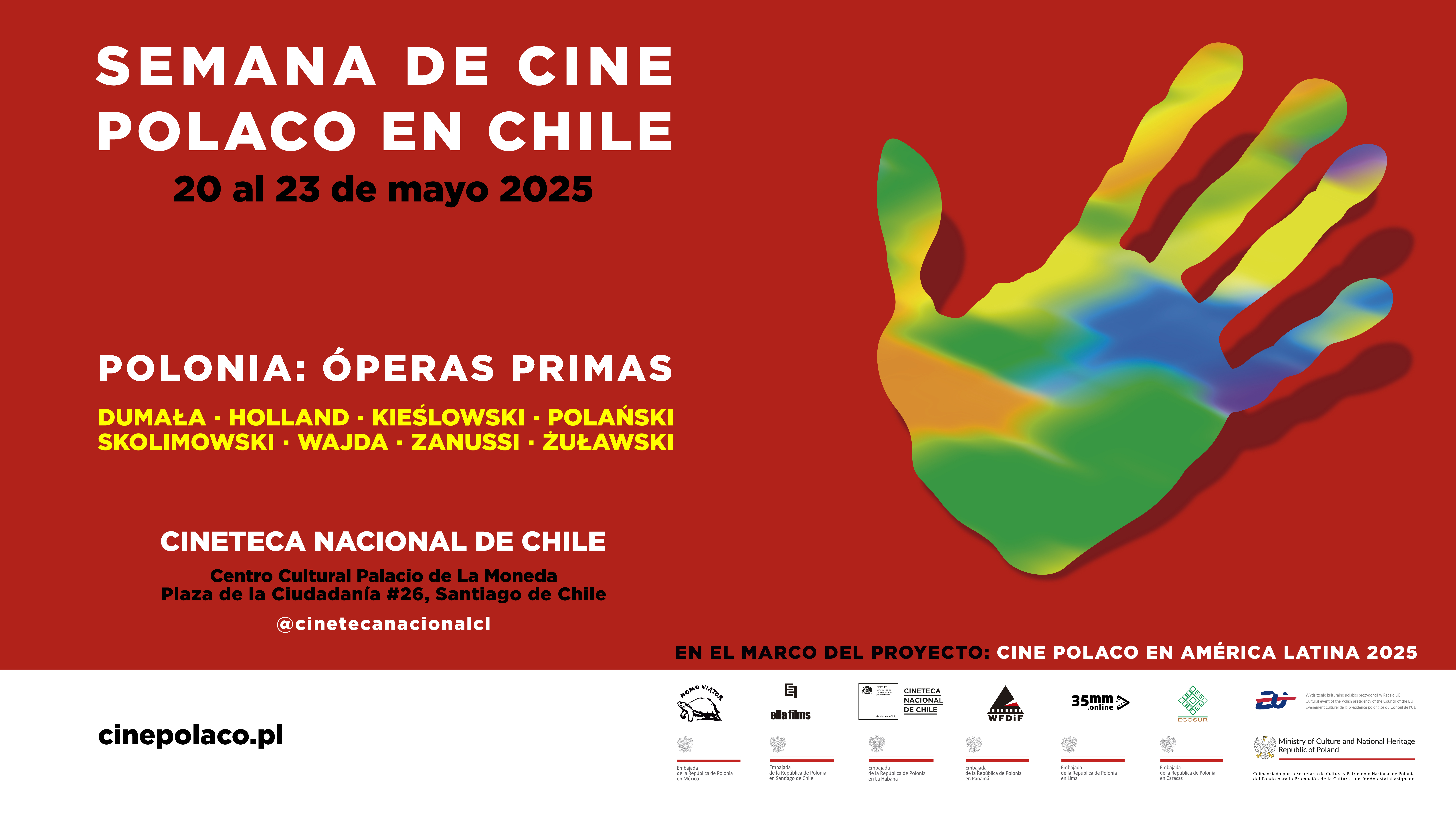 Tydzień Filmu Polskiego w Chile odbył się w ramach projektu POLSKIE KINO W AMERYCE ŁACIŃSKIEJ 2025 w 7 krajach (Chile, Kostaryka, Kuba, Meksyk, Peru, Panama, Wenezuela) w okresie polskiej prezydencji w Radzie Unii Europejskiej.