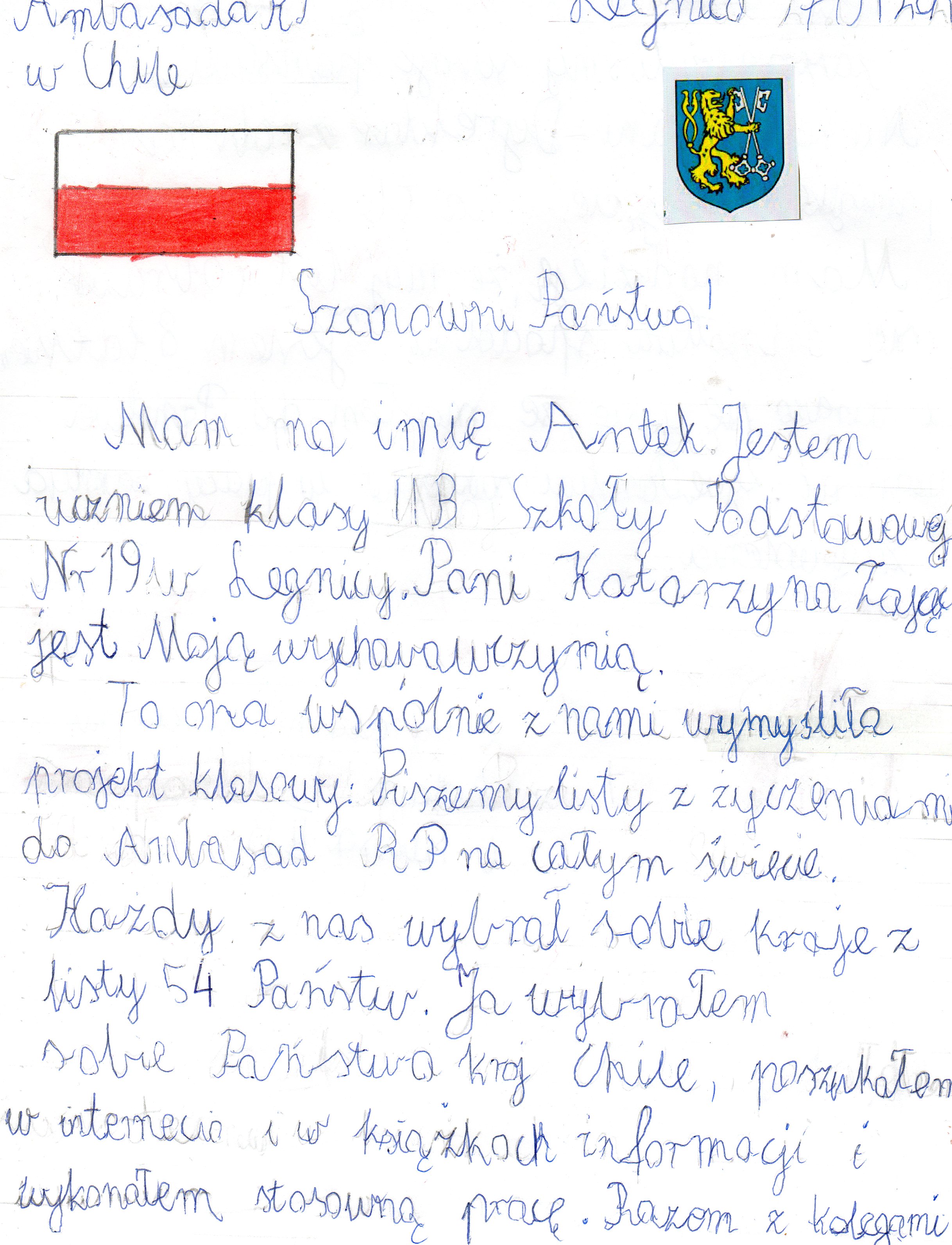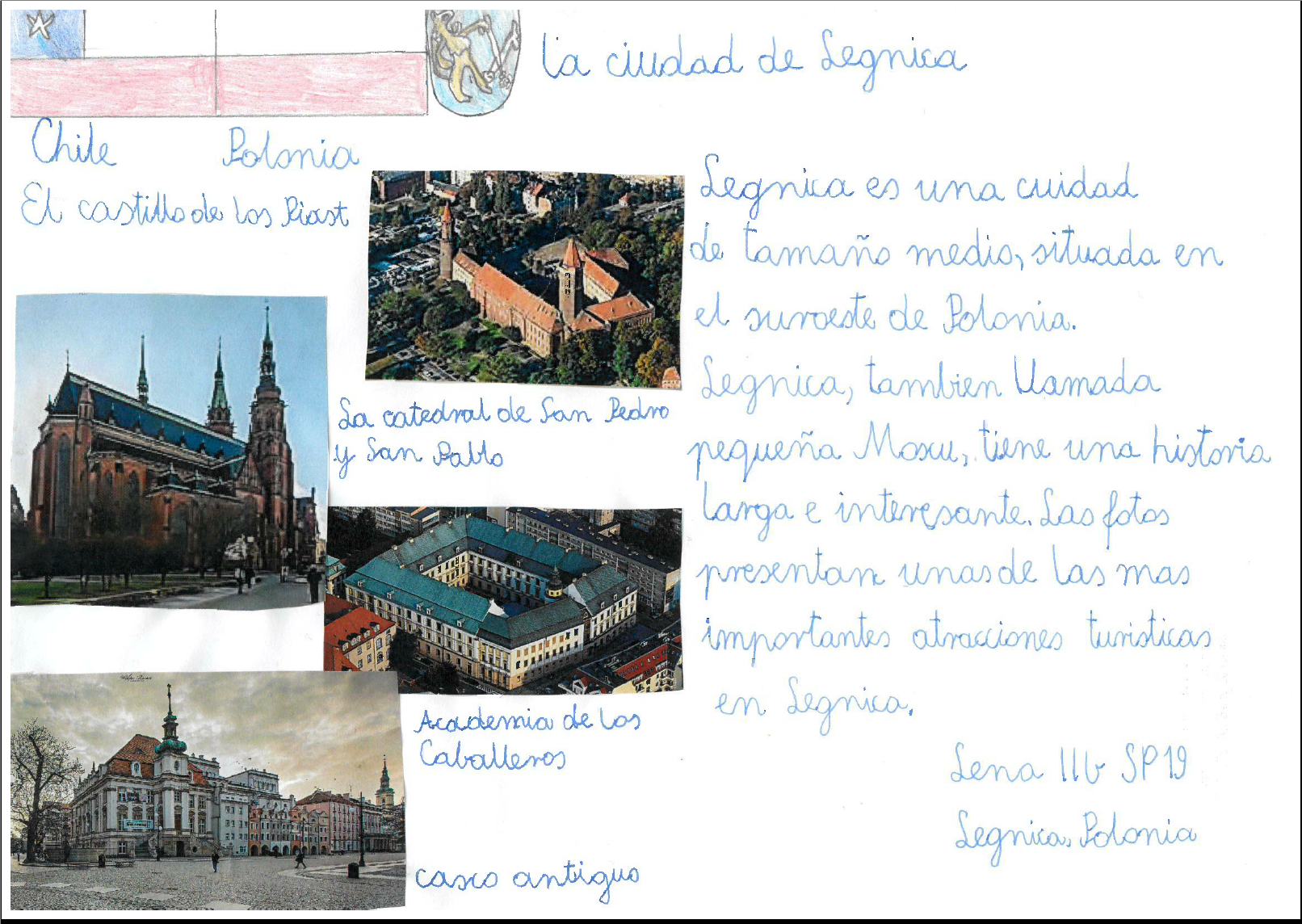 Dzieci z klasy II b w Szkole Podstawowej nr. 19 w Legnicy napisały list do Konsula Honorowego RP w La Serena prof. Jaime Pozo Cisternas, w którym w języku hiszpańskim opowiedziały o swoim mieście. Dzięki zaangażowaniu i pomocy ze strony wychowawczyni uczniowie mieli także okazję poznać Chile, w tym jego unikalną przyrodę. Ambasada również dostała od dzieci piękny list, za który chcemy szczególnie podziękować Antosiowi i Lence, pilnie uczącej się języka hiszpańskiego. Prezentacja o Legnicy jest już w La Serena i możną ja także zobaczyć na miejscowym Uniwersytecie.