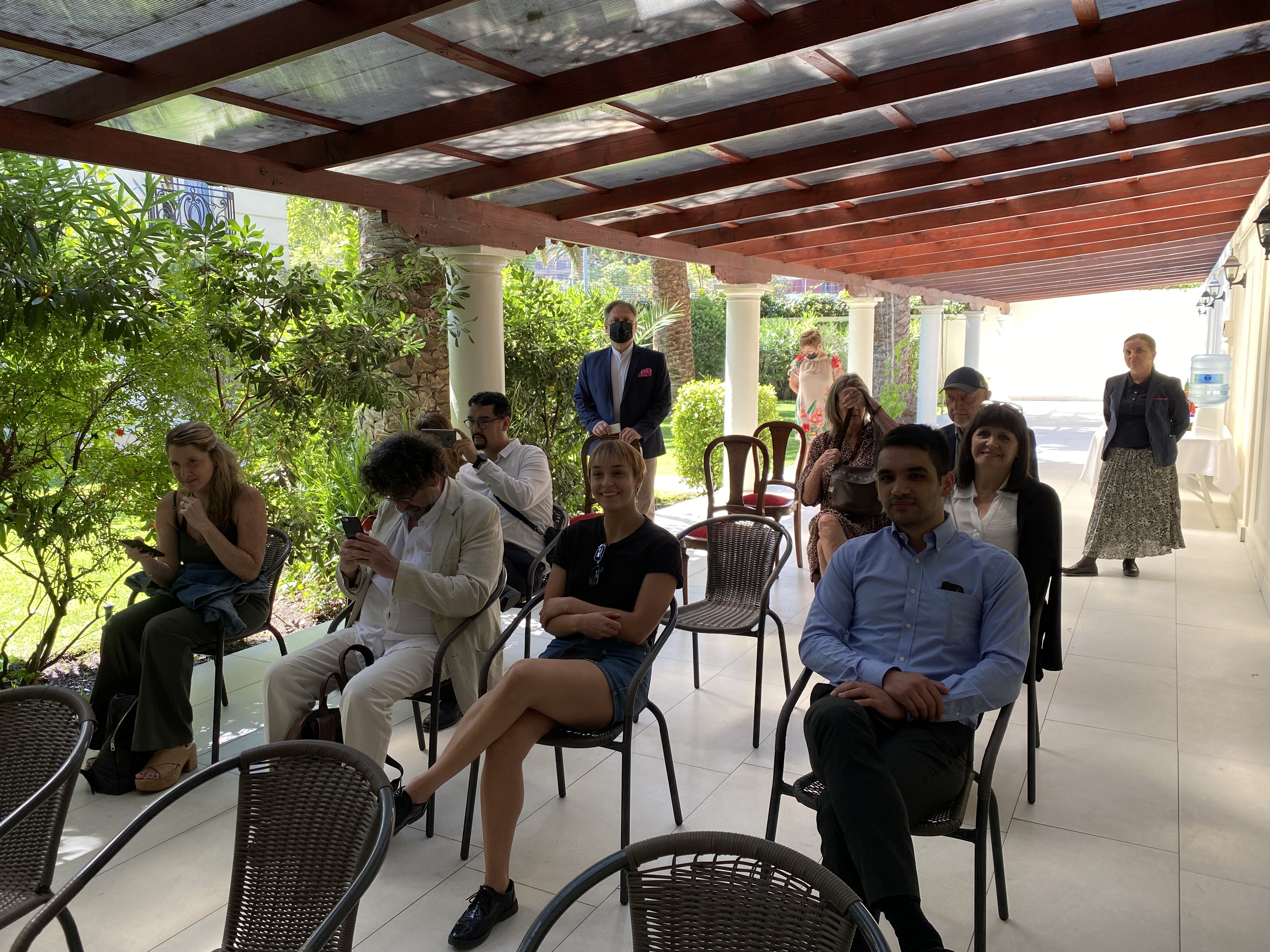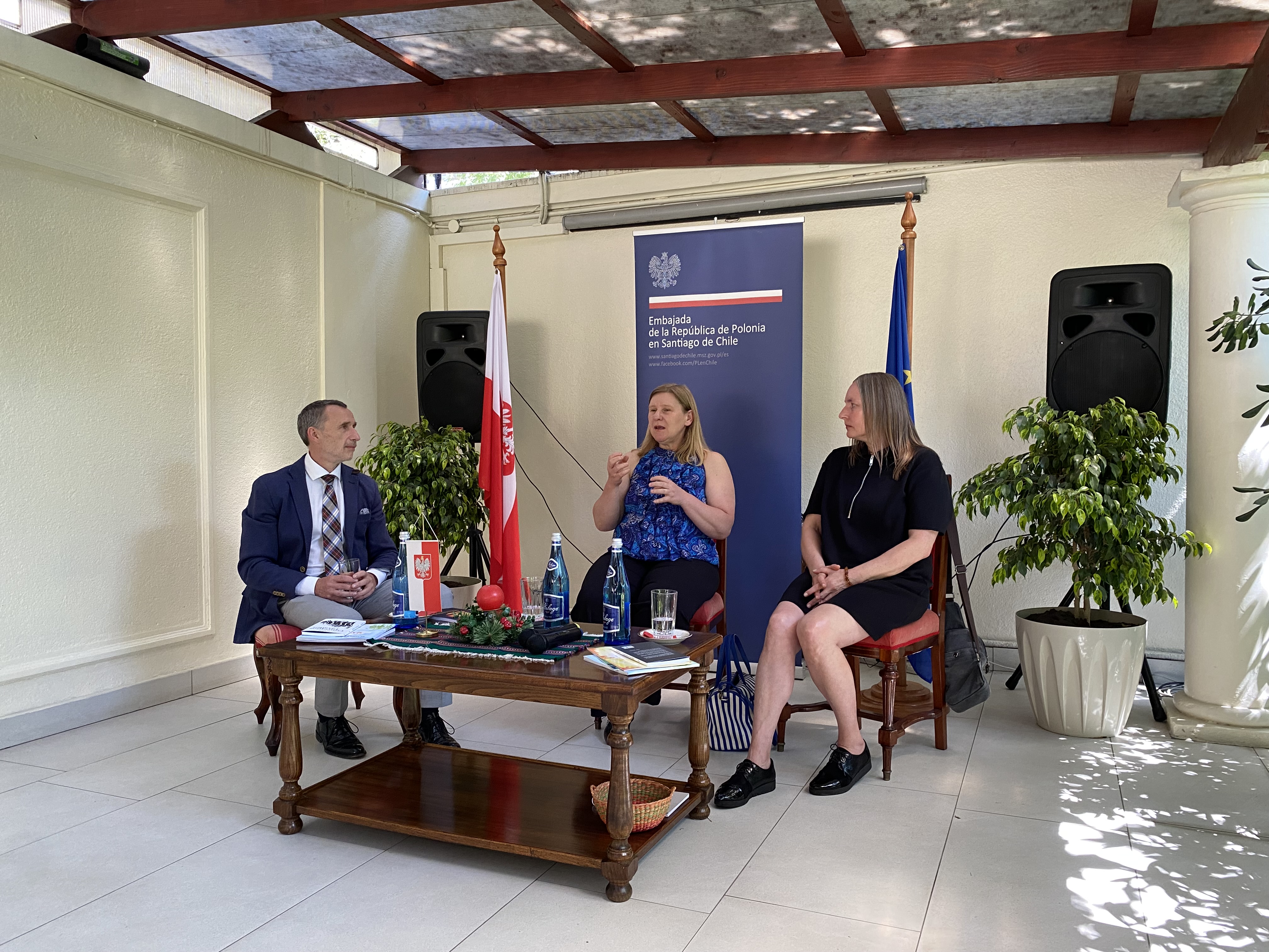 W dniu 17 grudnia br. mieliśmy przyjemność gościć w Ambasadzie Panią Ewę Jasińską i Jolantę Polk które zaprezentowały swoje literackie osiągnięcia. W przypadku Pani Ewy, pianistki, kompozytorki i pedagoga muzycznego był to tomik poezji „Conceptos lavados” oraz książka dla dzieci „El viaje de Ana alrededor del mundo” inspirowana muzyką, między innymi muzyką Fryderyka Chopina, Michała Glinki, Piotra Czajkowskiego i Roberta Schumanna. Autorem ilustracji przygód małej Anny jest Io Naya, chilijska historyk sztuki, rodzinnie związana z tutejszą Polonią.