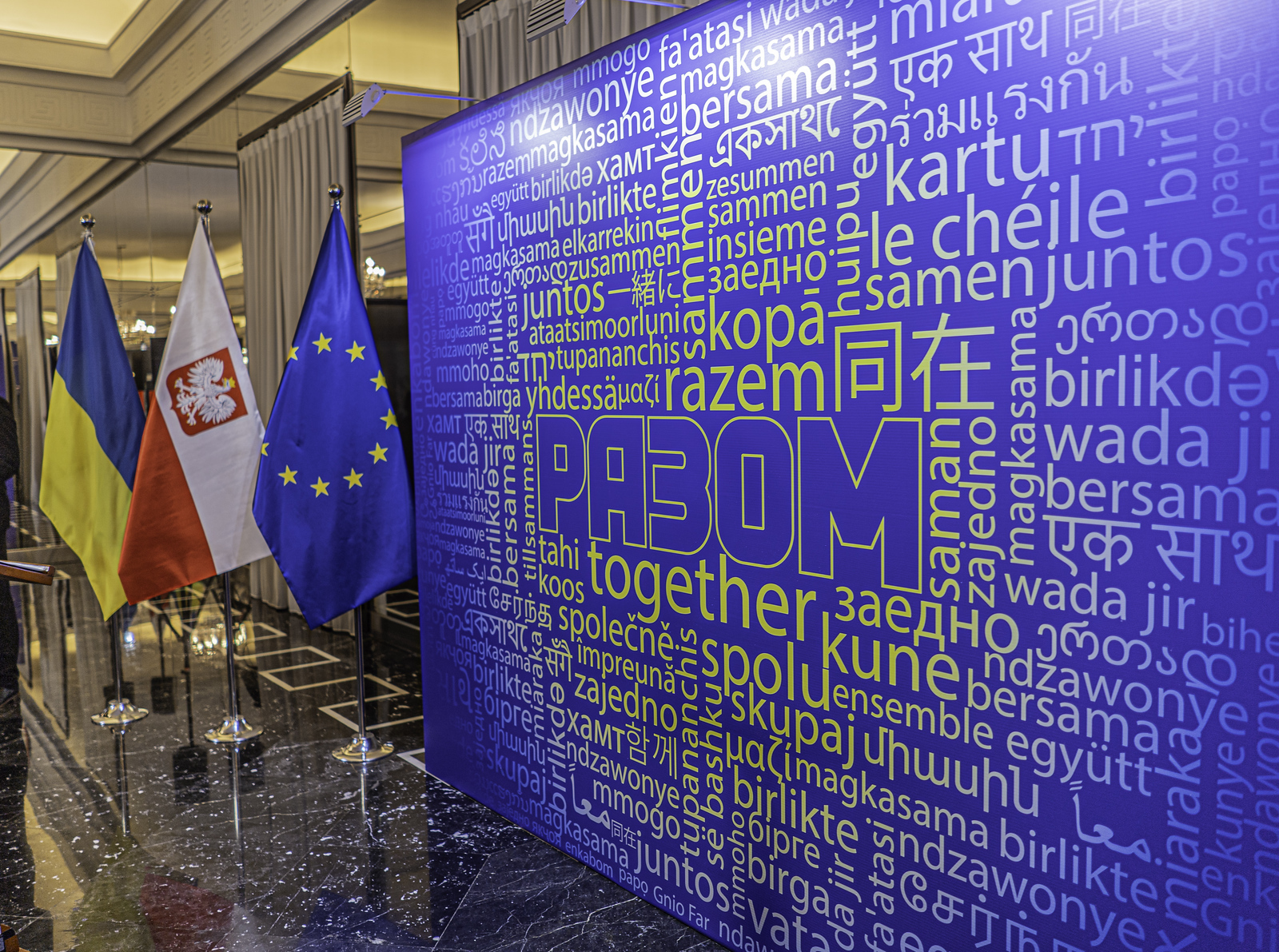 Podczas części oficjalnej uroczystości ambasador Jakub Kumoch opowiedział o swoich osobistych doświadczeniach z okresu tuż przed wojną, w tym wizyty Prezydenta RP A. Dudy w Ukrainie 23 lutego 2022 r., oraz z pierwszych dni wojny. Ambasador Ukrainy Pawło Riabikin nawiązał do hasła wydarzenia („Razem”), przypominając o znaczeniu wspólnego działania dla wysiłków na rzecz zwycięstwa Ukrainy, przywrócenia długotrwałego pokoju, sprawiedliwości i rządów prawa zniszczonych przez Federację Rosyjską. Ponadto głos zabrali ambasador UE Jorge Toledo, ambasador Wielkiej Brytanii Caroline Wilson oraz ambasador Stanów Zjednoczonych Nicholas Burns. We wszystkich przemówieniach można było odnaleźć wątek przewodni wydarzenia – siła solidarności bierze się z bycia razem i wspólnej walki w słusznej sprawie.