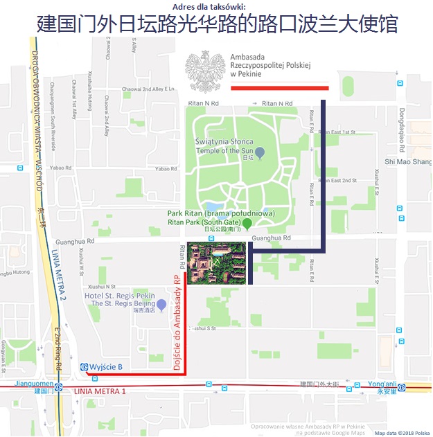 Mapka lokalizacji Ambasady RP w Pekinie znajduje się poniżej - dojazd liniami metra 1 i 2