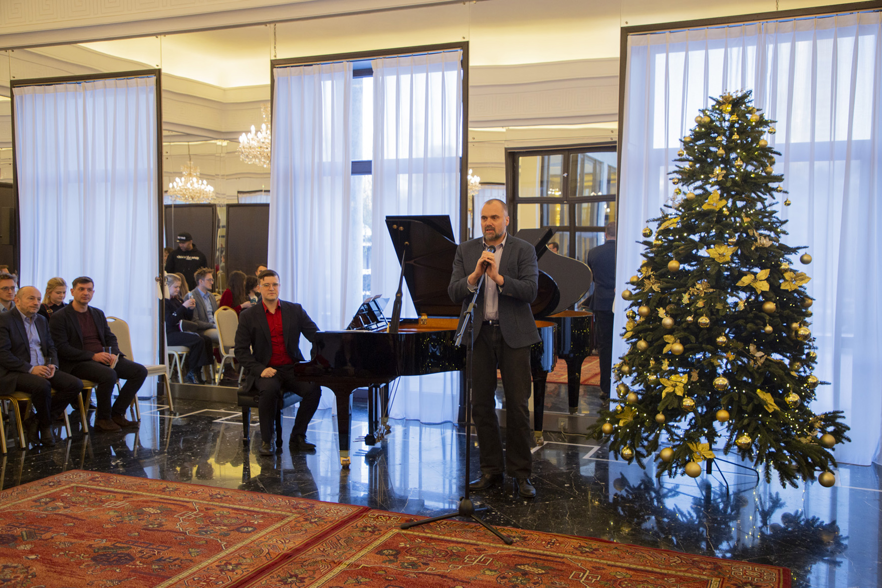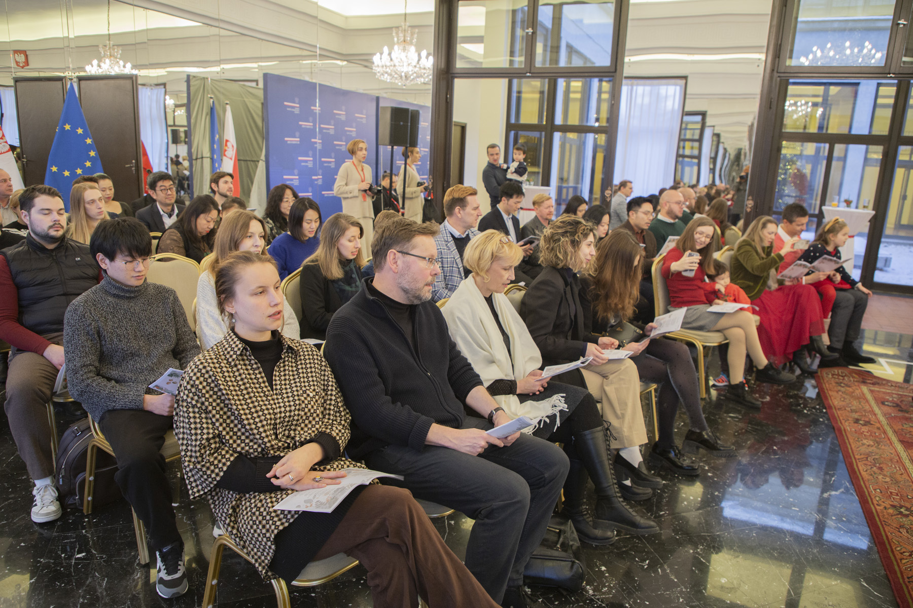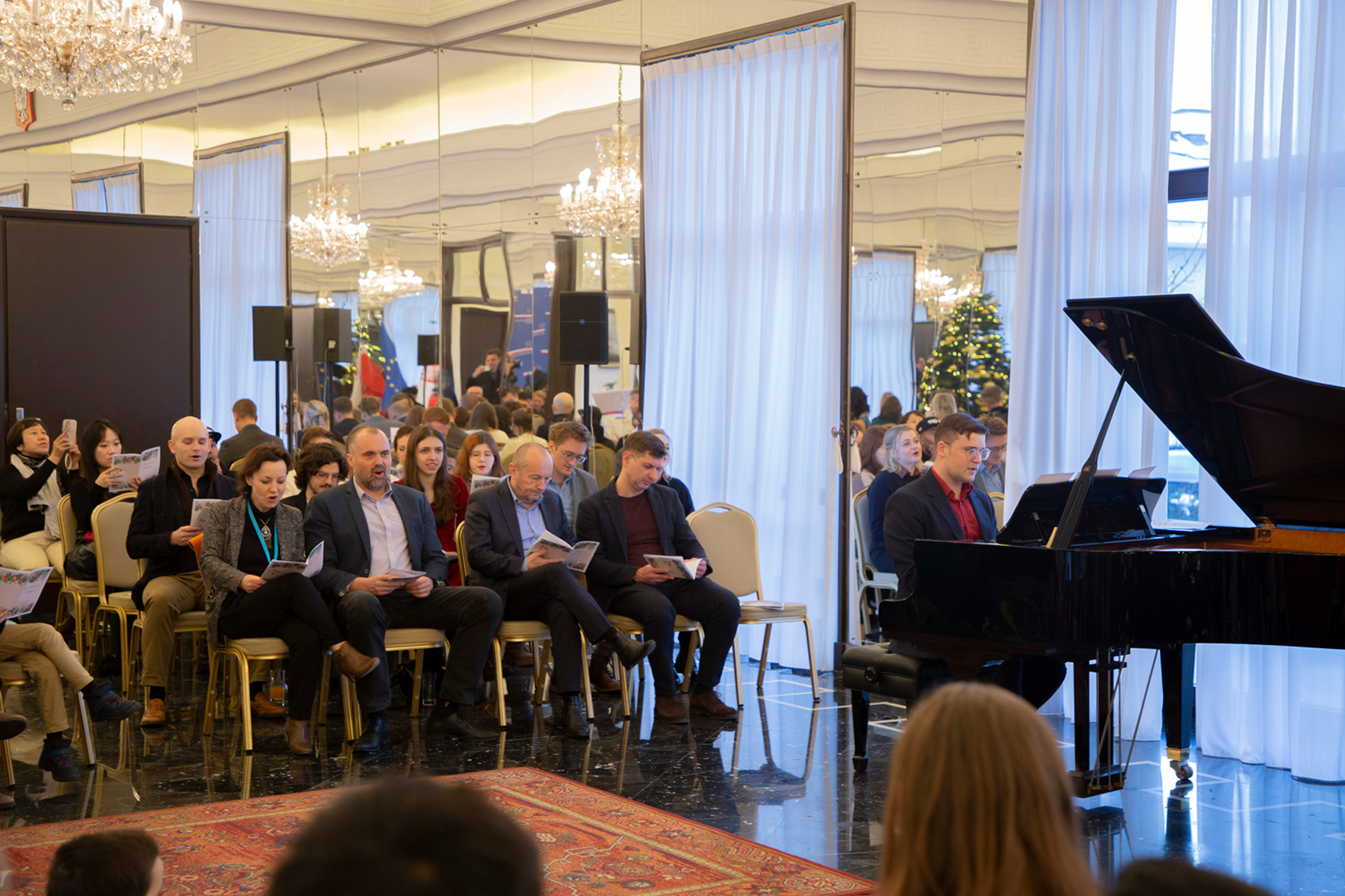 W ten niezwykły wieczór, ponad 130 Polek i Polaków zamieszkałych w pekińskim okręgu konsularnym wraz z rodzinami, spędziło na wspólnym śpiewaniu tradycyjnych polskich kolęd przy akompaniamencie naszego kolegi z Ambasady - Krzysztofa Florczyka.