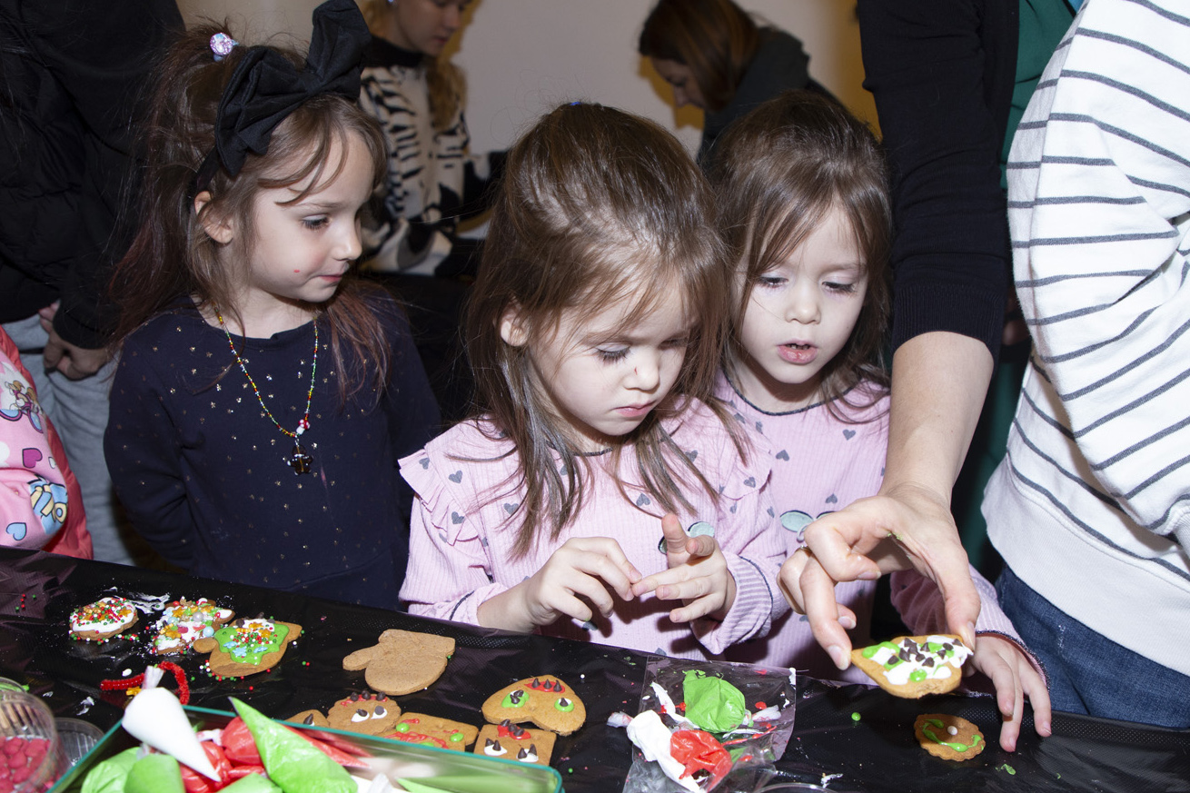 Po koncercie, najmłodszych uczestników wydarzenia wraz z rodzicami i dziadkami, zaprosiliśmy na warsztaty z dekorowania pierników oraz wykonania ozdób świątecznych pod okiem polskiej artystki Darii Lu.