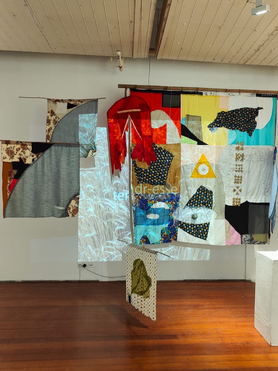 Centralnym motywem kompozycji jest ręcznie szyta struktura inspirowana „świętym kątem” – tradycyjną przestrzenią domowego kultu, a także twórczością Jerzego Nowosielskiego, którego artystyczne badania nad ikonicznością i duchowością przenikają współczesny dyskurs o sacrum w sztuce.