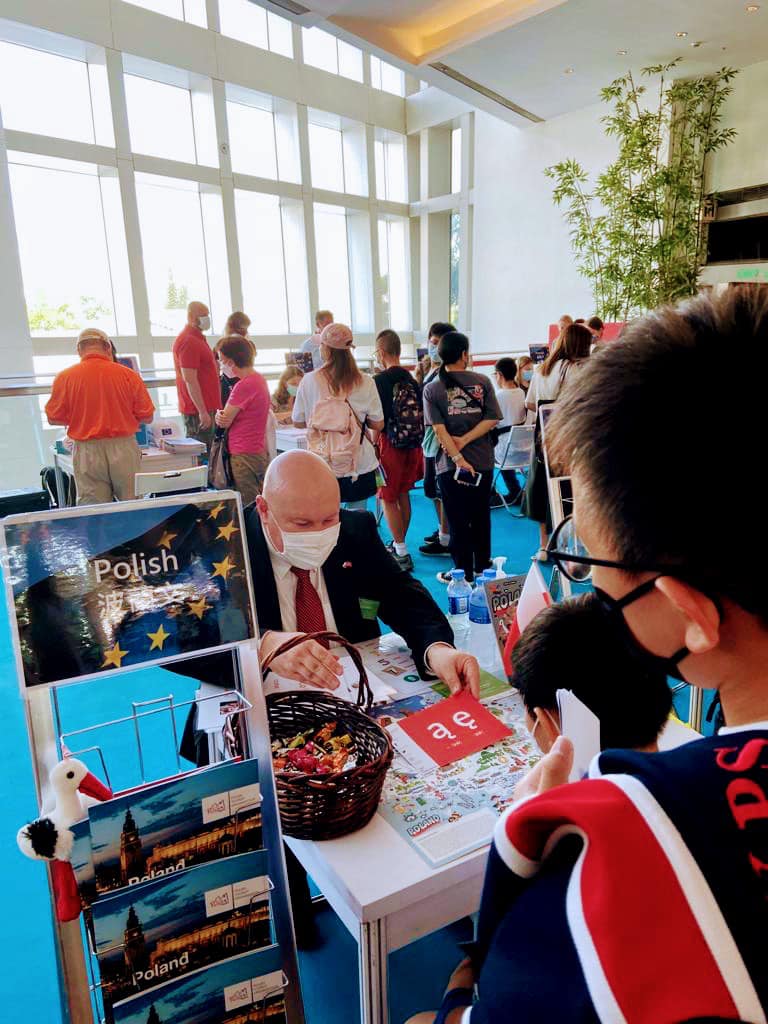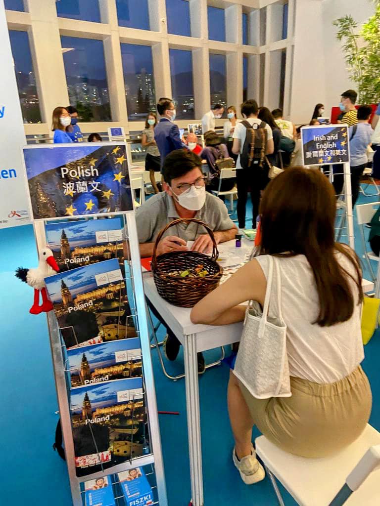 26 września br. w Hongkongu odbyła się IX edycja Europejskiego Dnia Języków. W wydarzeniu „Speak Dating 2022”, które zorganizowano w centrum handlowym Festival Walk w dzielnicy Kowloon Tong, uczestniczyło 13 państw członkowskich UE mających swoje przedstawicielstwa i instytuty kultury w Hongkongu (np. Goethe-Institut, Alliance Francaise, Societa Dante Alighieri), w tym Konsulat Generalny RP w Hongkongu, który samodzielnie przygotował polskie stoisko.