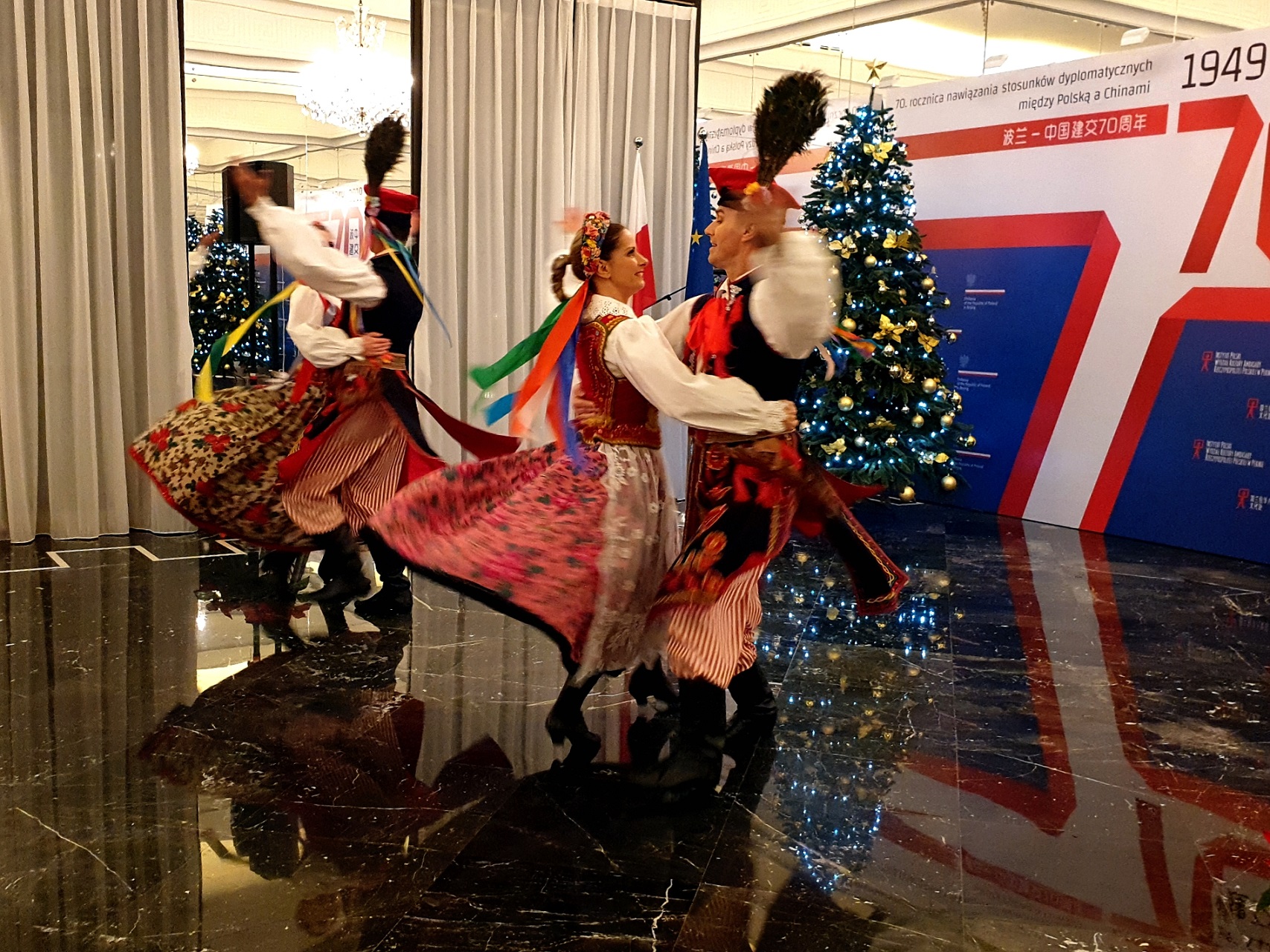 W dniu 15 grudnia 2019 r. w Ambasadzie RP w Pekinie odbył się koncert z okazji Świat Bożego Narodzenia. Z programem złożonym z polskich kolęd, pastorałek oraz pieśni bożonarodzeniowych wystąpili artyści Zespołu Pieśni i Tańca „Śląsk” im. Stanisława Hadyny, prezentując dodatkowo wybrane tańce polskie. Obok najbardziej rozpoznawalnych utworów, znalazły się także szerzej mniej znane kompozycje. Występ spotkał się z ciepłym przyjęciem ponad 120-osobowej publiczności - Polaków na stałe i czasowo zamieszkałych w Pekinie i okolicach, którzy chętnie włączyli się do wspólnego kolędowania. Liczny udział wydarzeniu wzięły także dzieci. Na zakończenie koncertu życzenia zgromadzonym złożył ambasador Wojciech Zajączkowski. Podczas okolicznościowego przyjęcia goście mieli okazję skosztować polskich przysmaków.
