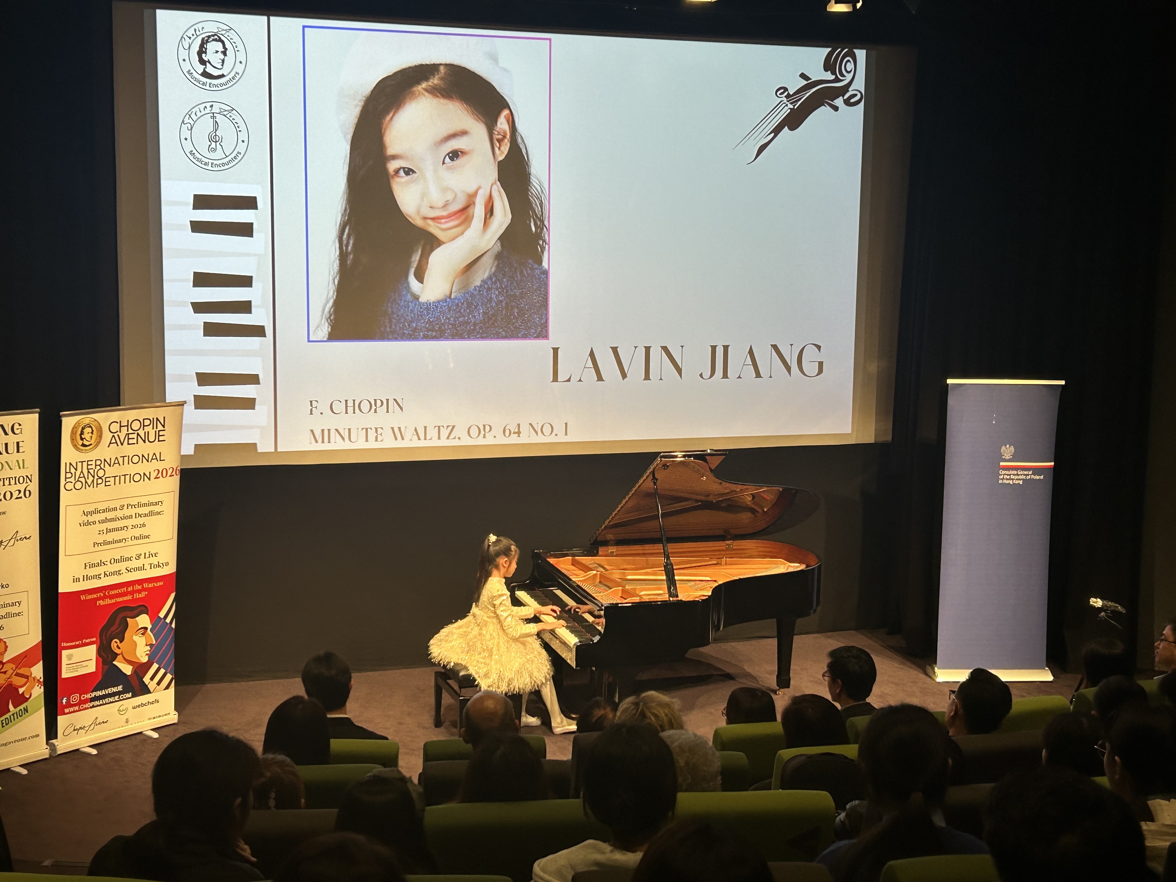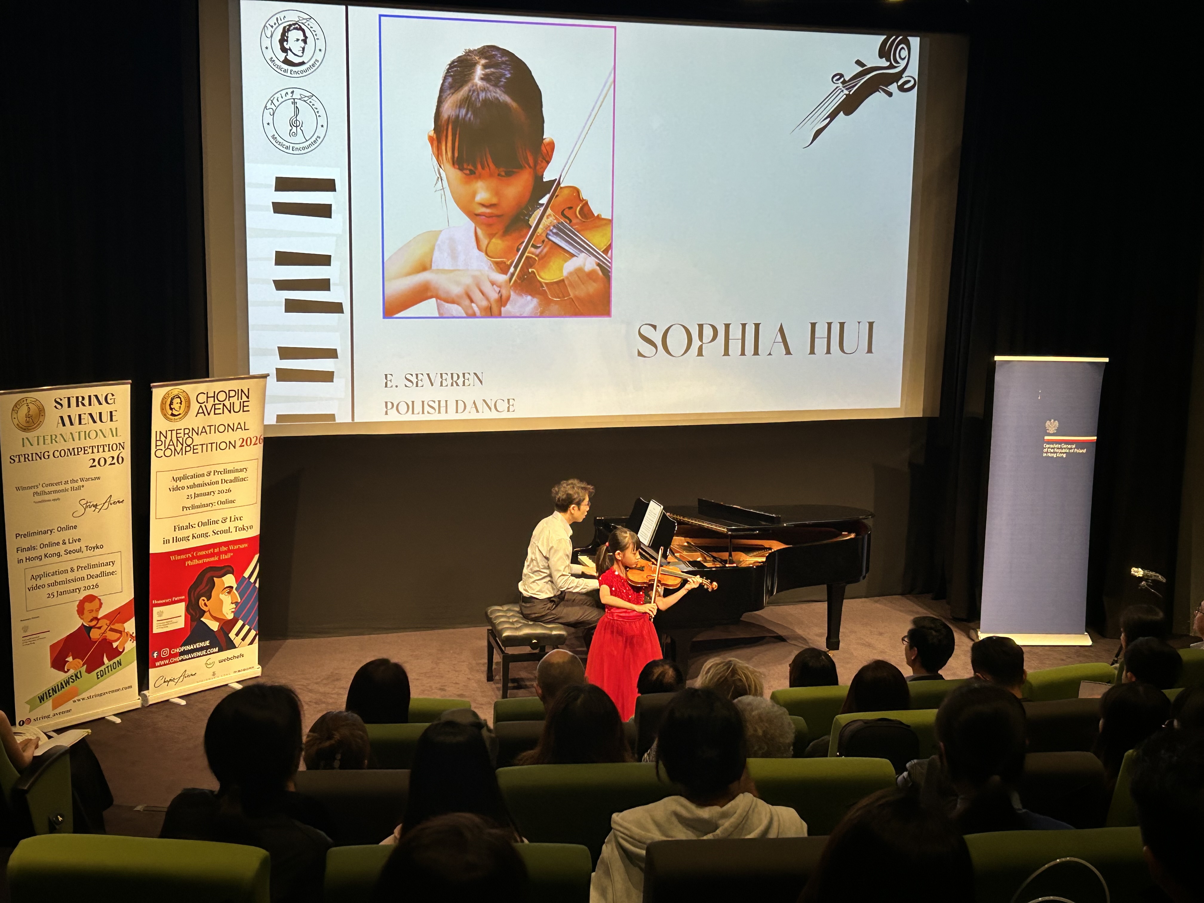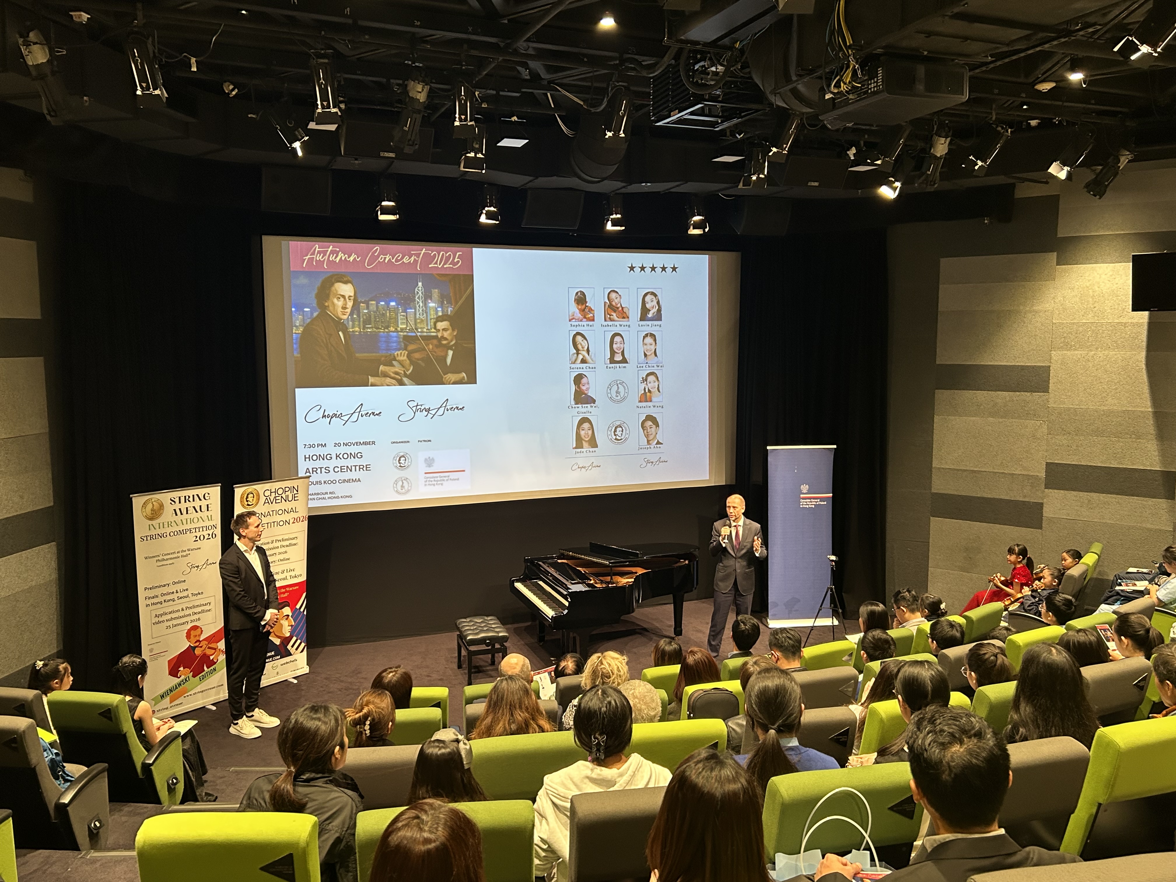 20 listopada 2025 r. w Hong Kong Arts Centre odbył się koncert fortepianowo-skrzypcowy „Chopin Avenue and String Avenue - Wieniawski Edition” w którym wystąpili młodzi muzycy z Hongkongu i Korei Południowej. Współorganizatorem i sponsorem koncertu był Konsulat Generalny RP w Hongkongu.