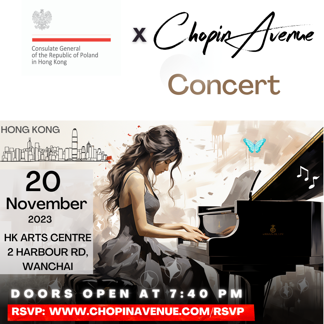 W dniu 20 listopada br. odbył się koncert pianistyczny laureatów tegorocznej edycji międzynarodowego konkursu „Chopin Avenue” w sali koncertowej Hong Kong Arts Centre.