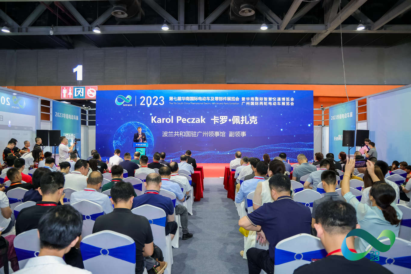 Przedstawiciele Konsulatu Generalnego RP w Kantonie i Zagranicznego Biura Handlowego Polskiej Agencji Inwestycji i Handlu S.A. w Szanghaju (ZBH) uczestniczyli 28 czerwca 2023 r. w konferencji otwierającej Międzynarodową Wystawę Pojazdów Elektrycznych i Części Chin Południowych (2023 South China International Electric Vehicle and Parts Exhibition) odbywające się w centrum wystawienniczym Guangzhou Poly World Trade Center Expo w Kantonie.