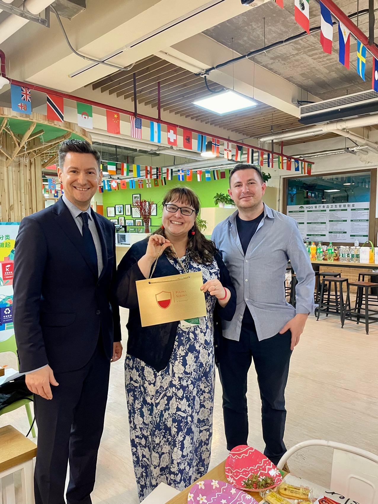 Dnia 15 marca 2024 r. w Konsulacie Generalnym RP w Szanghaju odbyło się spotkanie z przedstawicielami Polskiej Szkoły w Szanghaju. Placówkę reprezentował wicekonsul Krzysztof Ignatowicz, który przyjął delegację władz szkoły: dyrektor PSS p. Katarzynę Łowińską oraz skarbnika, dr Andrzeja Juchniewicza.
