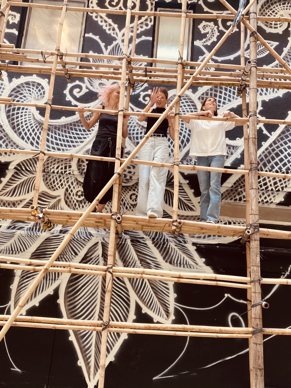 Polski koronkowy mural w centrum Hongkongu