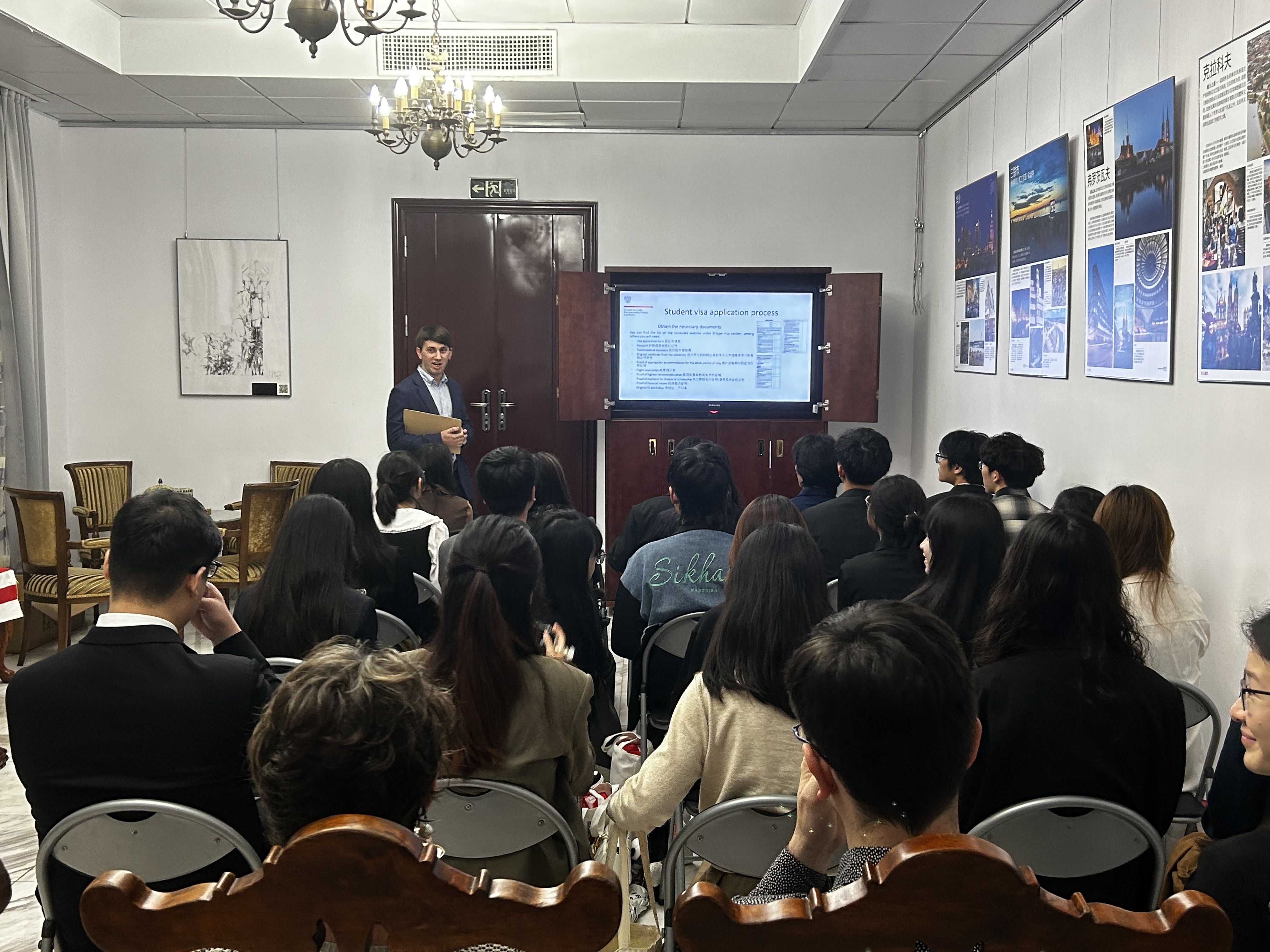Gości powitał Konsul Generalny RP Piotr Nowotniak, wręczając studentom świąteczne upominki. W programie spotkania znalazła się również przedstawiona przez wicekonsula Wojciecha Kłysia informacja na temat procedury wizowej skierowana do studentów zamierzających w niedalekiej przyszłości studiować w Polsce. Zaprezentowane informacje usprawnią proces uzyskiwania decyzji wizowych przez zainteresowanych studentów i pozwolą zminimalizować powtarzające się błędy w jego toku.