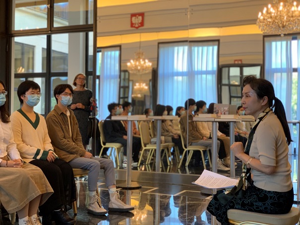 Podczas warsztatów, poprowadzonych przez panią Izabellę Zajączkowską, małżonkę Ambasadora RP w Pekinie, studenci mieli okazję poszerzyć swoje słownictwo i umiejętności tłumaczenia, a przy okazji wiedzę nt. polskiej kuchni. Gościnnie w czasie warsztatów wystąpiła również pani Du Jing, znana dziennikarka i pisarka, która przedstawiła studentom swoje doświadczenia z licznych podróży do Polski.