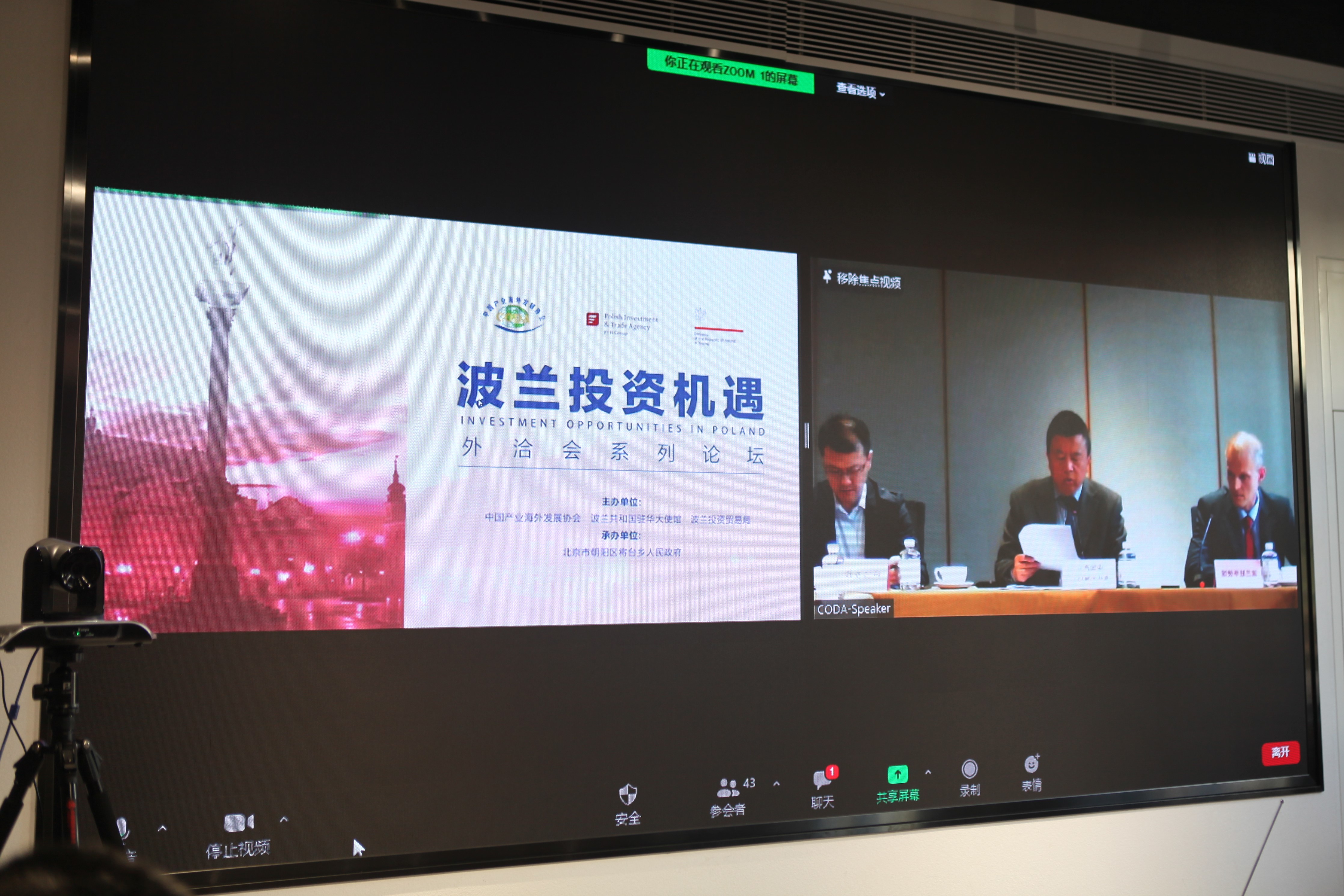 W dniu 29 kwietnia 2021 r. Ambasada RP w Pekinie we współpracy z Polską Agencją Inwestycji i Handlu oraz China Overseas Development Association (CODA) zorganizowała webinarium poświęcone warunkom prowadzenia działalności dla inwestorów zagranicznych skierowane do potencjalnych chińskich inwestorów.