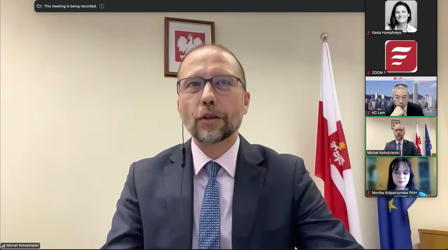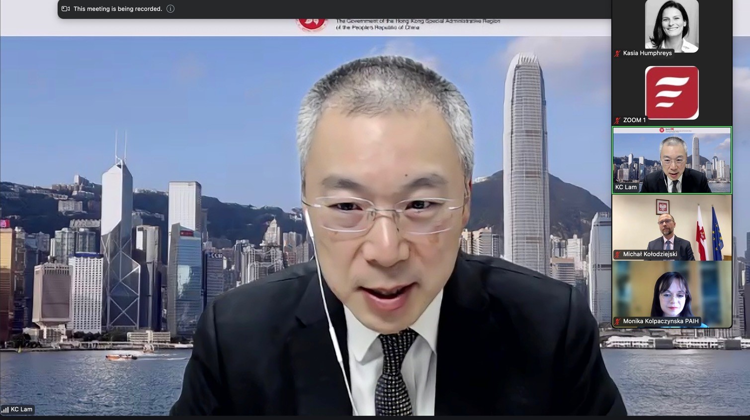 W pierwszej części webinarium Konsul Generalny Michał Kołodziejski zaprezentował ekonomiczne i polityczne uwarunkowania działalności zagranicznych firm w Hongkongu. Przedstawił możliwy wpływ nowych przepisów dotyczących bezpieczeństwa wewnętrznego w Hongkongu na działalność międzynarodowych przedsiębiorstw. Przybliżył również uczestnikom praktyczny wymiar zasady „jeden kraj – dwa systemy” dla działalności biznesowej. Kolejny prelegent, KC Lam, szef Biura Współpracy z Konsulatami w rządowej organizacji INVEST HK, przedstawił główne atuty Hongkongu, takie jak świetna infrastruktura; indywidualnie podpisywane (odrębne od ChRL) korzystne umowy handlowe, prostota procedur zakładania działalności gospodarczej w tym regionie itd. Monika Kołpaczyńska z Zagranicznego Biura Handlowego w Szanghaju zaoferowała praktyczne wskazówki na temat eksportu do regionu GBA i Hongkongu oraz omówiła strategie, które mogą pomóc w wejściu na te rynki. Anna Dowgiałło z HKTDC – Hong Kong Trade Development Council, przedstawiła kalendarz imprez targowych w Hongkongu oraz kluczowe aspekty przygotowań do tych wydarzeń. Podkreśliła wagę targów przy poszukiwaniu dystrybutorów i partnerów biznesowych w Hong Kongu. W ostatniej części webinarium Filip Ziółek, Prezes Polskiej Izby Handlowej (PolCham) w Hongkongu, odpowiadał na pytania uczestników, dając praktyczne porady dotyczące prowadzenia działalności w tym regionie. Omówił m.in. szanse i zagrożenia związane z rynkiem, zwracając uwagę na wyzwania związane z eksportem poszczególnych grup produktów.