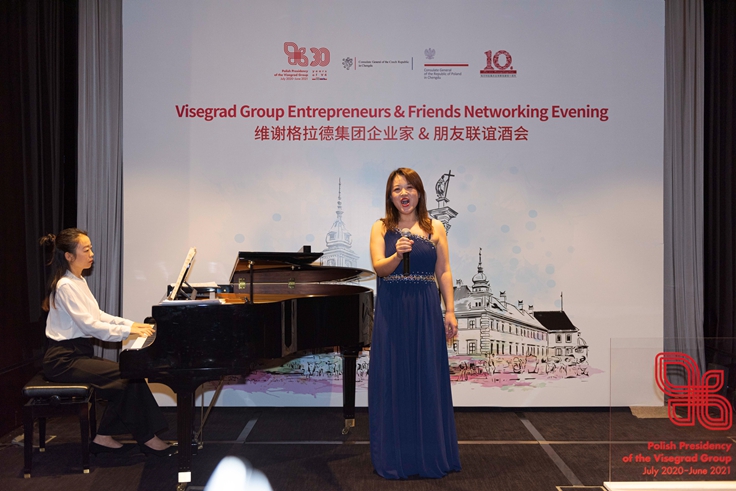Wyjątkowym akcentem wieczoru był recital muzyki polskiej, czeskiej i węgierskiej wykonany w języku polskim, czeskim i francuskim przez Aixin Ge, absolwentkę Akademii Muzycznej im. Karola Szymanowskiego w Katowicach, obecnie profesor na Uniwersytecie Południowo-Zachodnim w Chongqing. Prezentowanych było również ok. 60 pozycji z literatury z krajów regionu przetłumaczonej na język chiński.