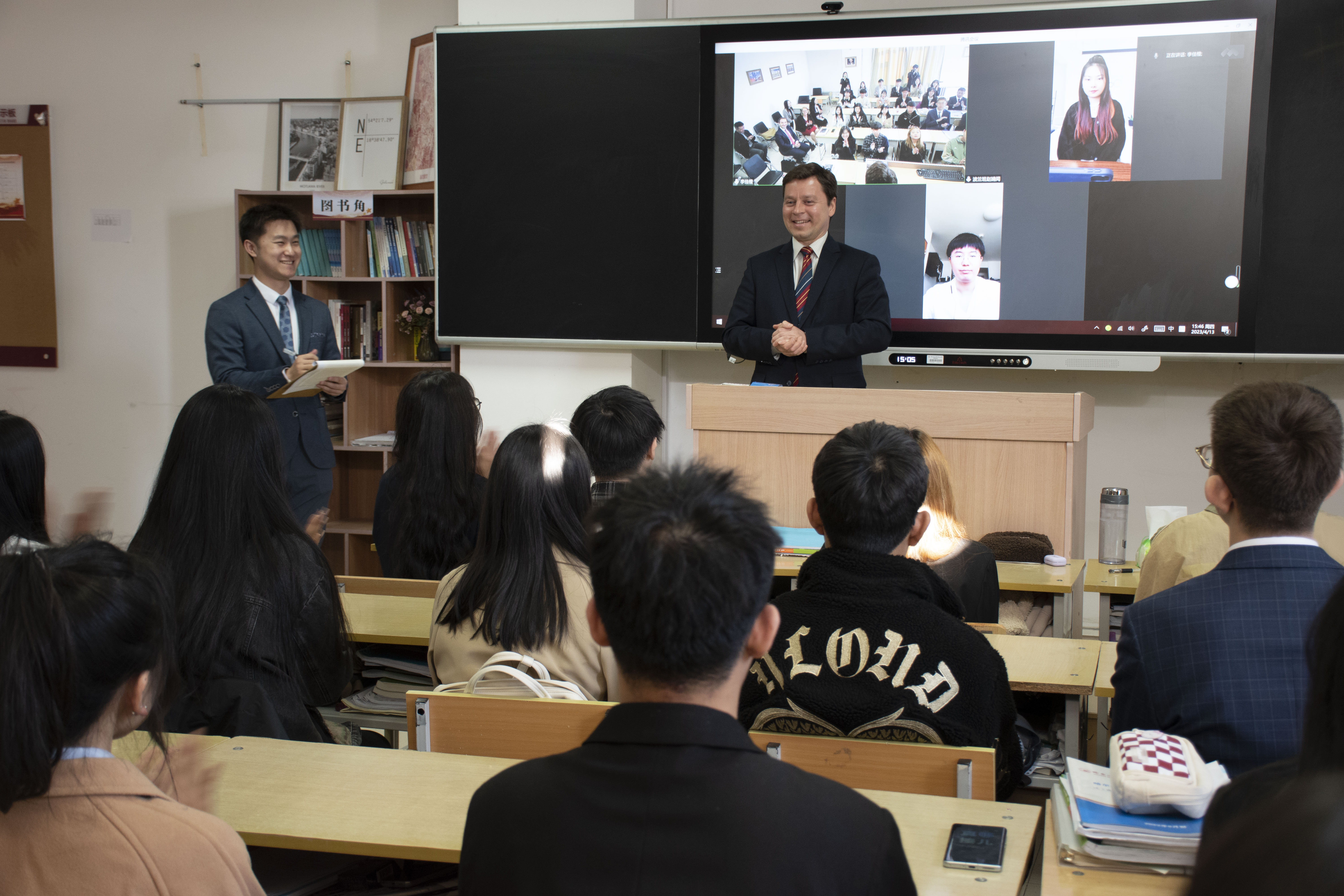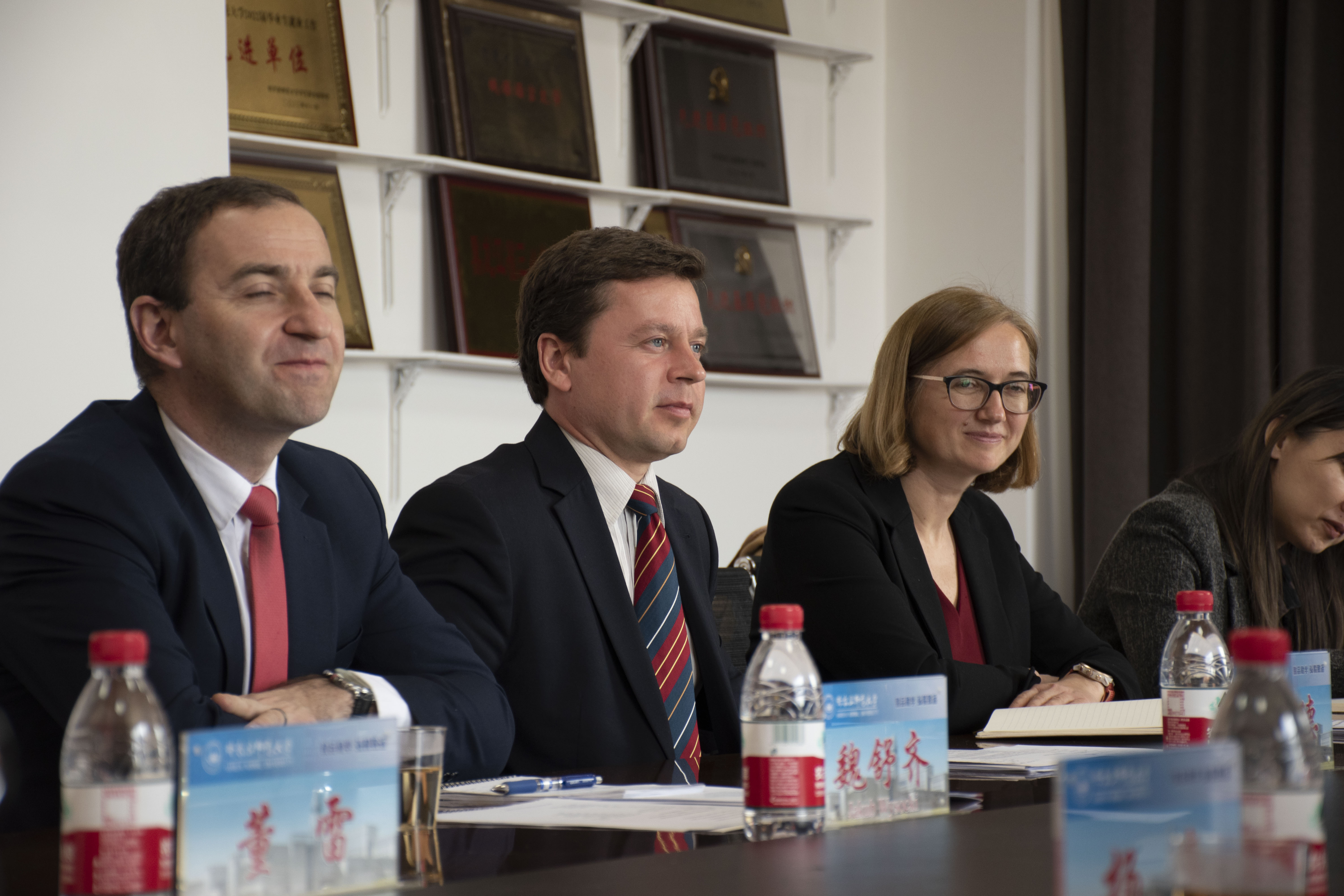 Goście z ambasady złożyli również wizytę w Centrum Kultury Słowiańskiej oraz spotkali się ze studentami pierwszego roku polonistyki oraz online z przedstawicielami trzeciego roku, studiującymi obecnie w Polsce na Uniwersytecie Gdańskim. Goście byli pod wrażeniem zaangażowania i znajomości języka polskiego studentów. W dyskusji poruszane były tematy żywo interesujące studentów i dyplomatów, w tym dotyczące języka, kultury i relacji polsko-chińskich. Studenci i lektorzy zachęcani byli także do skorzystania z oferty stypendialnej Narodowej Agencji Wymiany Akademickiej (NAWA) w ramach programów współpracy dwustronnej, „Polonista” oraz „Letnie kursy NAWA”.