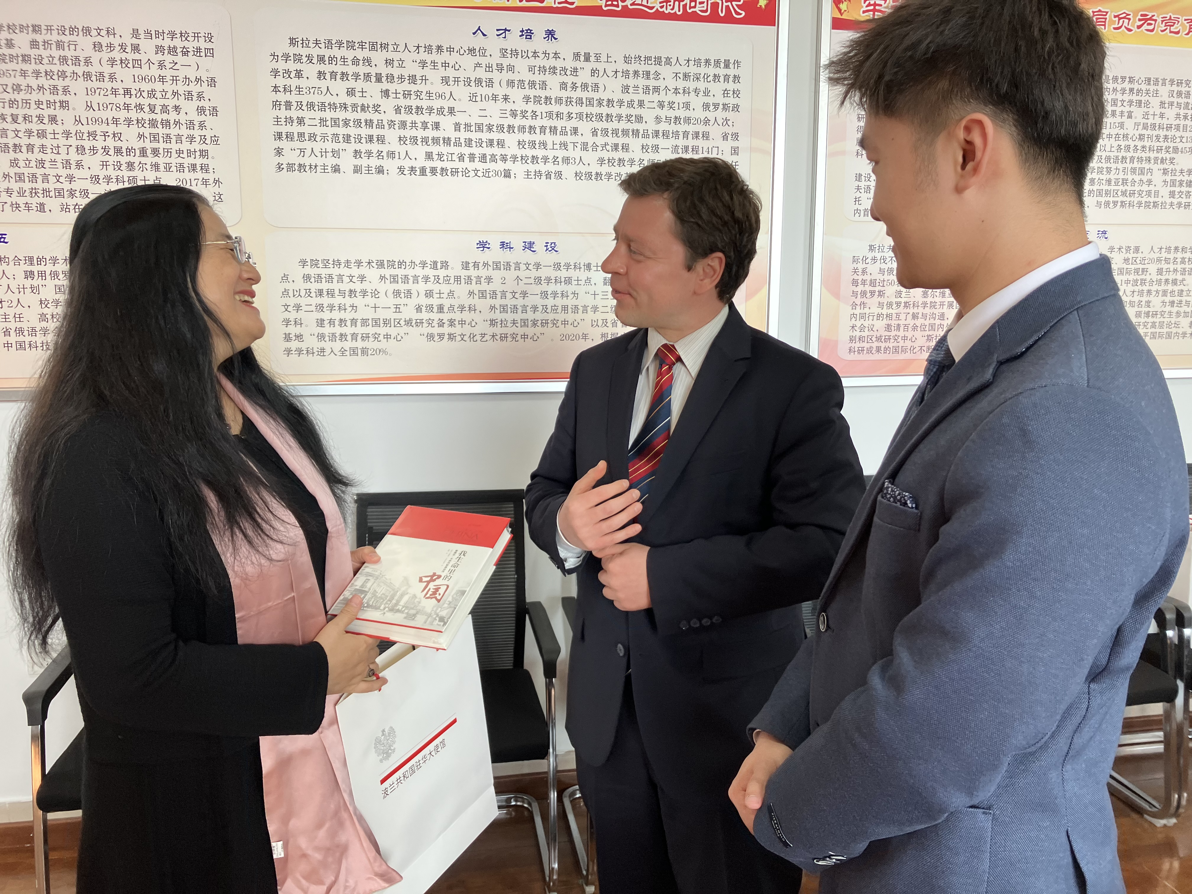 13 kwietnia 2023 r. delegacja z Ambasady RP w Pekinie odwiedziła Katedrę Polonistyki na Wydziale Języków Słowiańskich Uniwersytetu Pedagogicznego w Harbinie. W trakcie wizyty zastępca kierownika placówki Radosław Flisiuk omówił z dziekan Wydziału Języków Słowiańskich Zhao Qiuye bieżącą działalność oraz plany rozwoju harbińskiej polonistyki. „Polonistyka w Harbinie należy do najważniejszych, z naszego punktu widzenia, ośrodków nauczania języka polskiego, przede wszystkim ze względu na historyczne związki miasta z Polską” – podkreślił. „Zależy nam na utrzymaniu zainteresowania Polską i językiem polskim w Harbinie i całej prowincji Heilongjiang.”