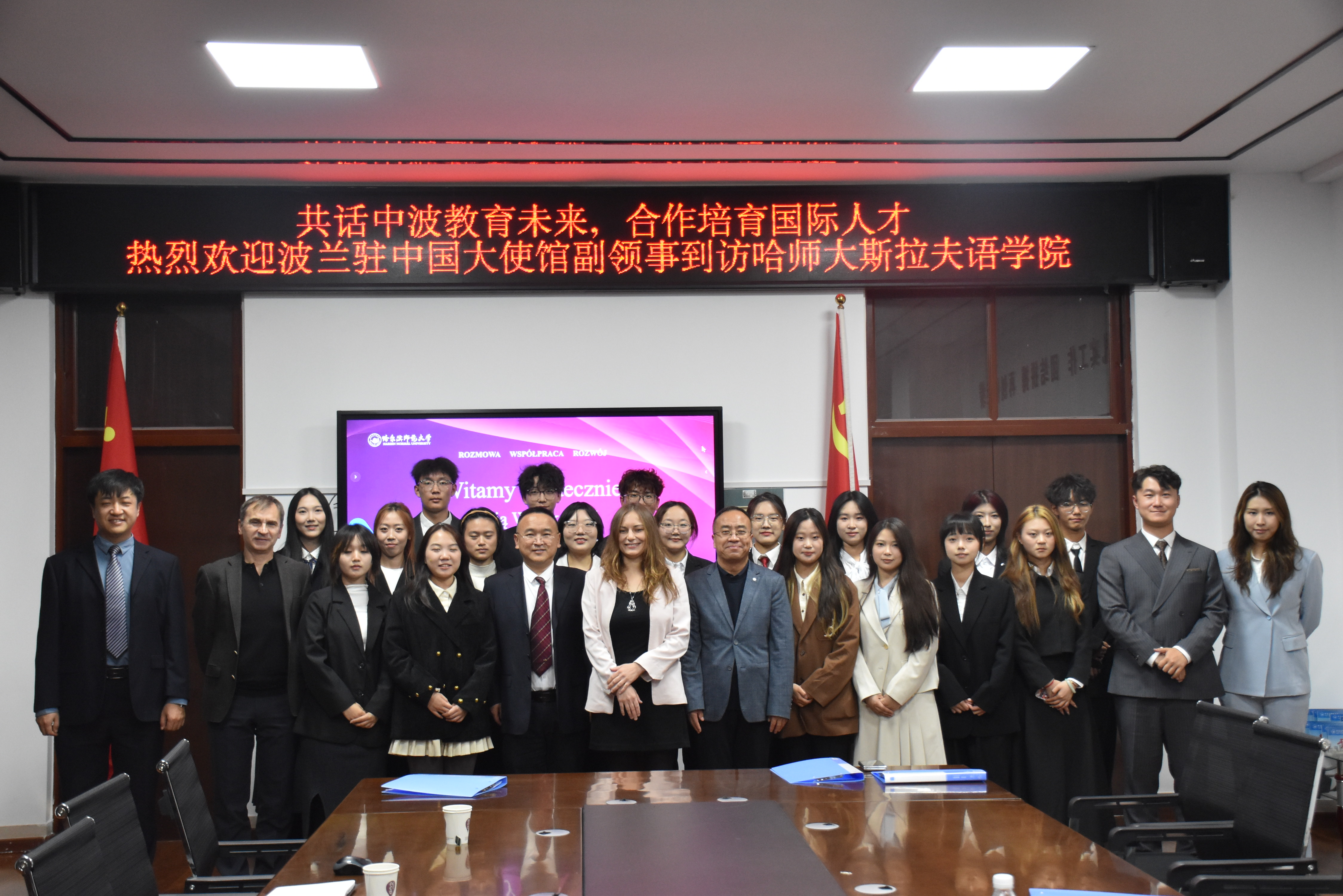 Spotkanie na Uniwersytecie zostało zorganizowane przez pracowników Katedry Języka Polskiego Wydziału Języków Słowiańskich. Poza wicekonsul wzięli w nim udział: prodziekan Wydziału Języków Słowiańskich – prof. Zhang Qiuye, kierownik Katedry Języka Polskiego – mgr. Yu Dachun, wykładowcy oraz studenci. Pracownicy Uniwersytetu opowiedzieli o funkcjonowaniu Wydziału Języków Słowiańskich oraz programie kształcenia języka polskiego. Studenci zaprezentowali program artystyczny w języku polskim i przygotowali pytania na temat nauki języka polskiego, życia w Polsce oraz doświadczeń związanych z pobytem w Chinach.