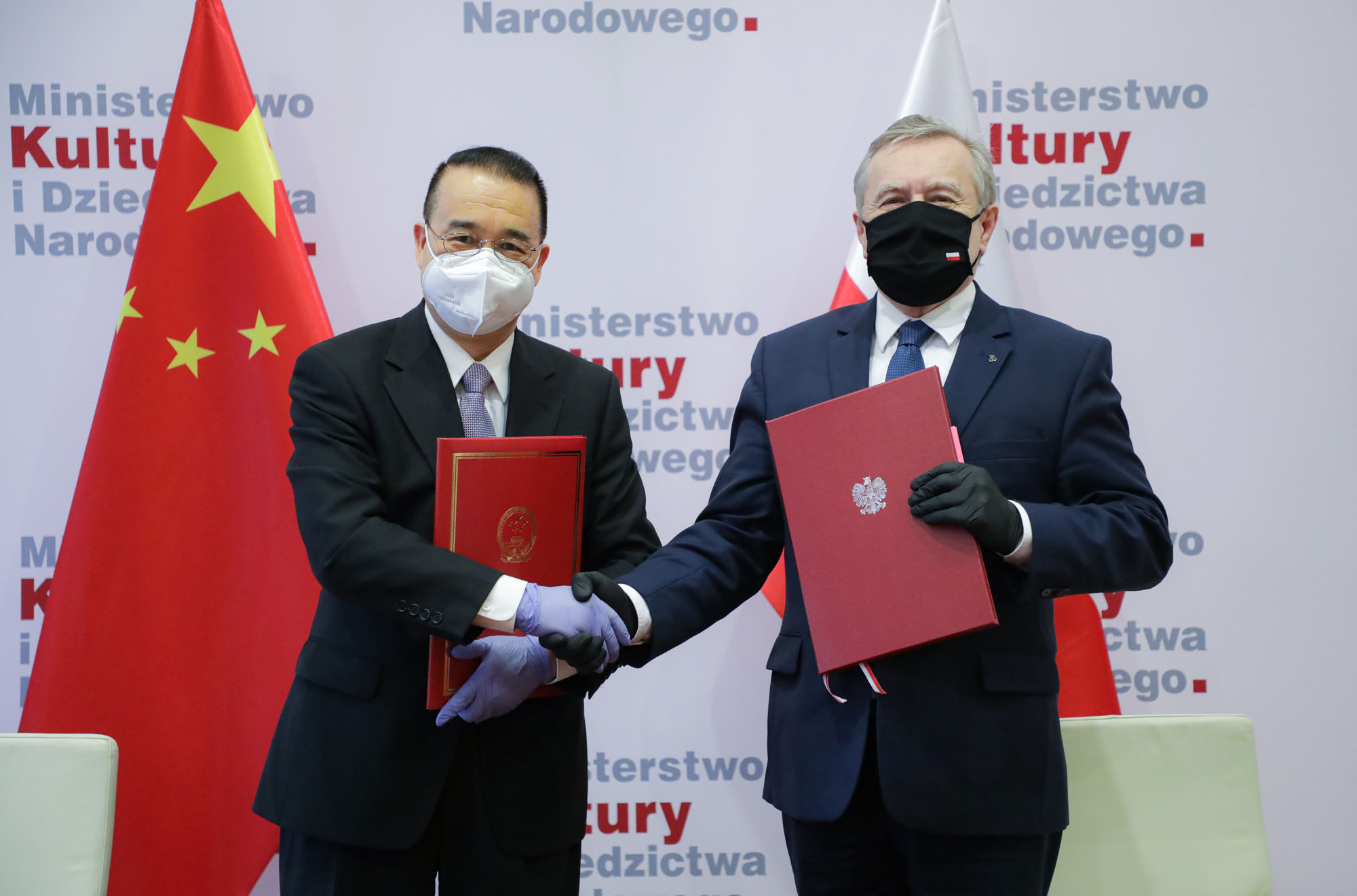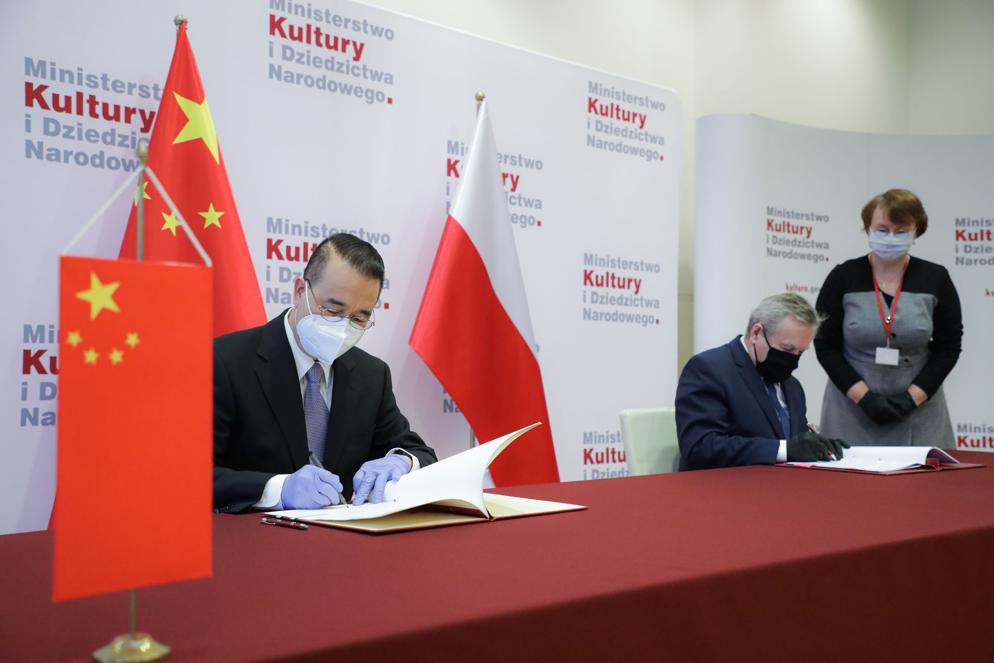 Podpisanie Protokołu o współpracy kulturalnej między Ministrem Kultury, Dziedzictwa Narodowego i Sportu Rzeczypospolitej Polskiej a Ministerstwem Kultury i Turystyki Chińskiej Republiki Ludowej 2021-2024