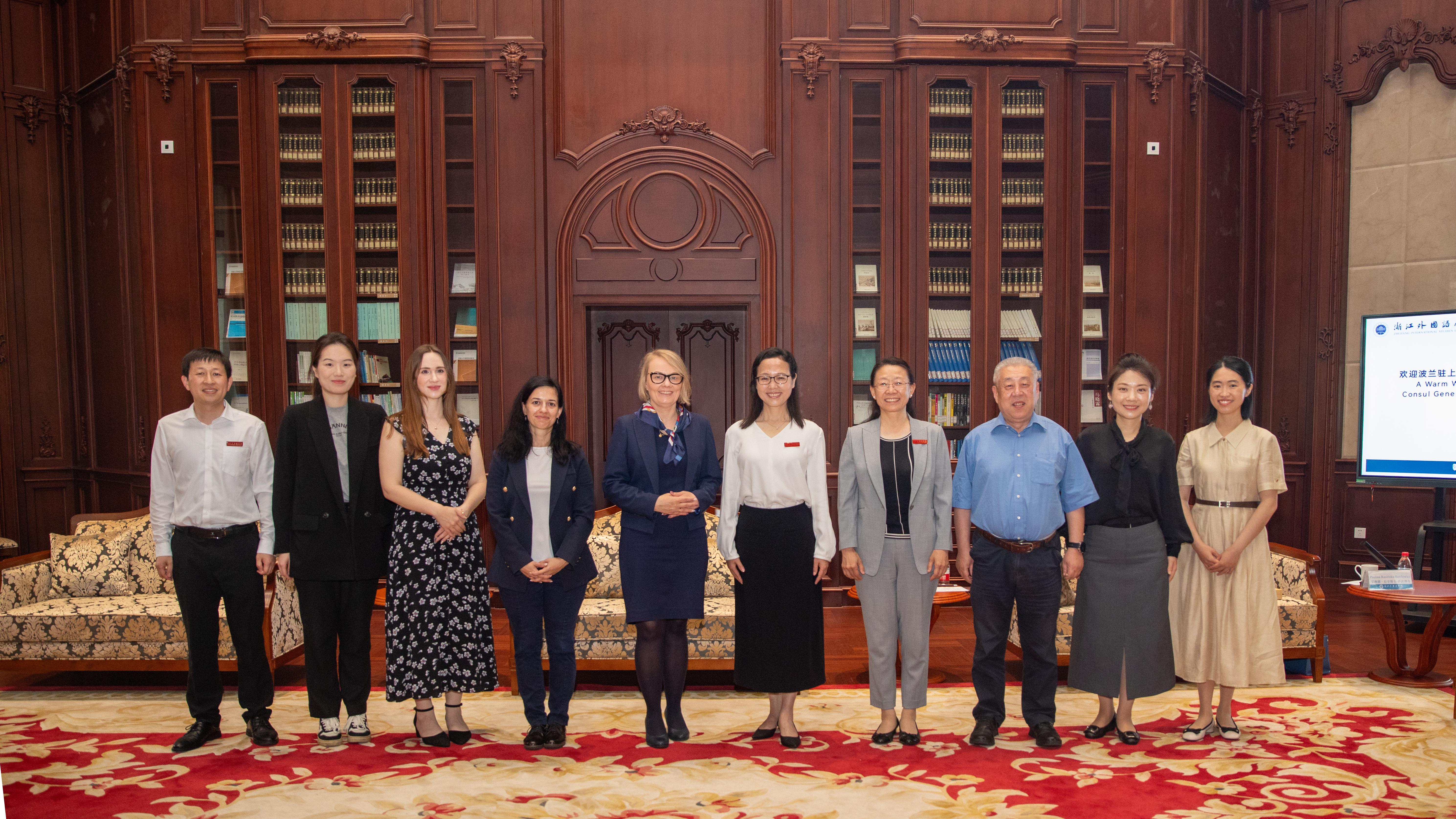 Podczas spotkania rektor Zhang wyraziła wdzięczność Konsulatowi Generalnemu RP w Szanghaju za wieloletnie wsparcie w budowie polonistyki na ZISU oraz działania podejmowane na rzecz zwiększenia wymiany akademickiej między Chinami i Polską. Poinformowała również, że obecnie na uczelni studiuje ok. 9400 studentów na 36 różnych kierunkach, z czego 16 stanowią kierunki językowe; zaś ZISU utrzymuje stałe partnerstwo z uczelniami z 50 krajów, w tym z Uniwersytetem Adama Mickiewicza w Poznaniu, Uniwersytetem Mikołaja Kopernika w Toruniu oraz Uniwersytetem Śląskim.