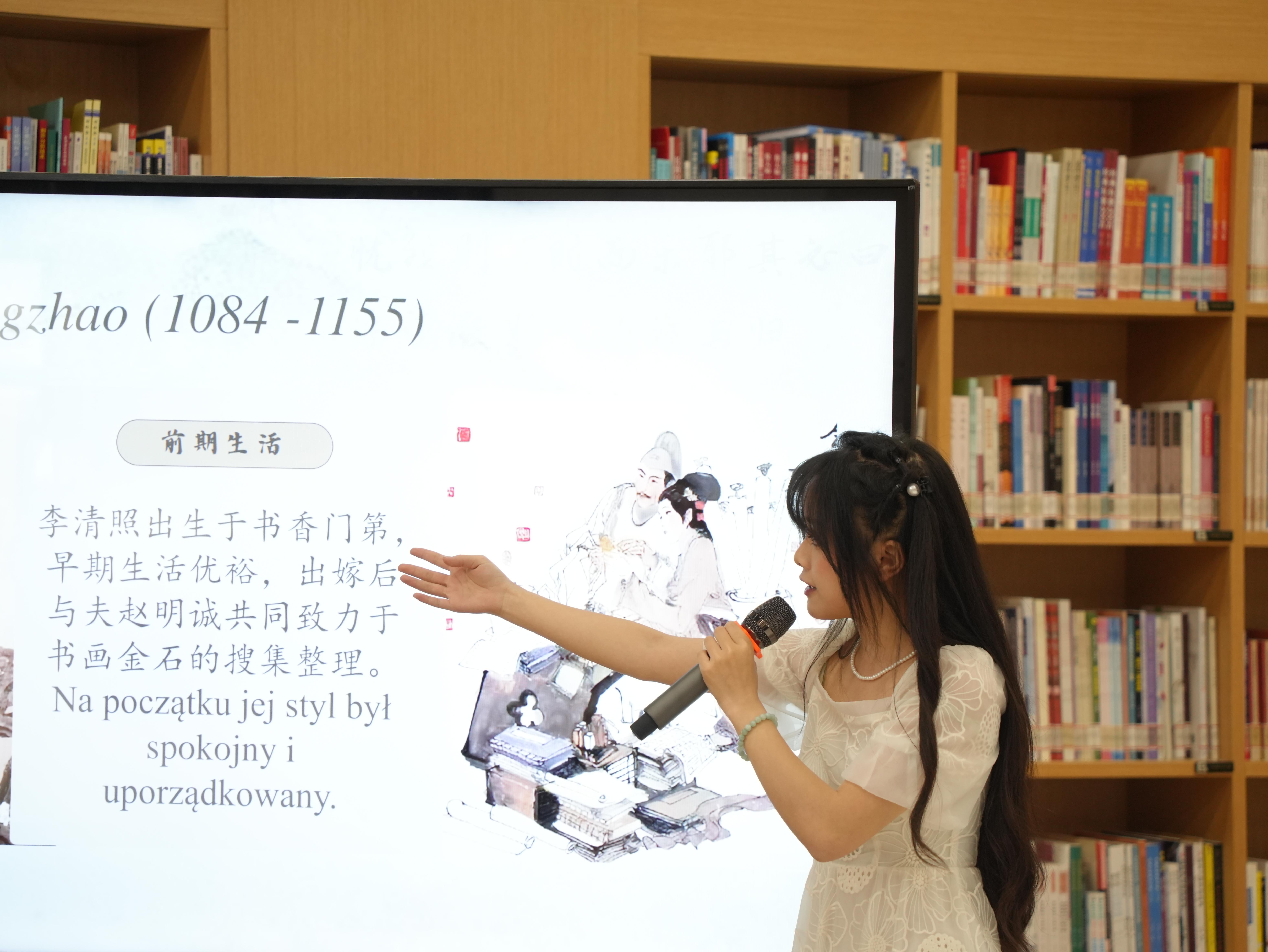 Na zakończenie wydarzenia, studentki polonistyki na ZISU, wygłosiły w języku polskim prezentację pt.: „Wybitne Chinki w moich oczach” i przybliżyły zgromadzonym postaci m.in.: Zhang Ailing, Li Qingzhao czy Lin Huiyin.
