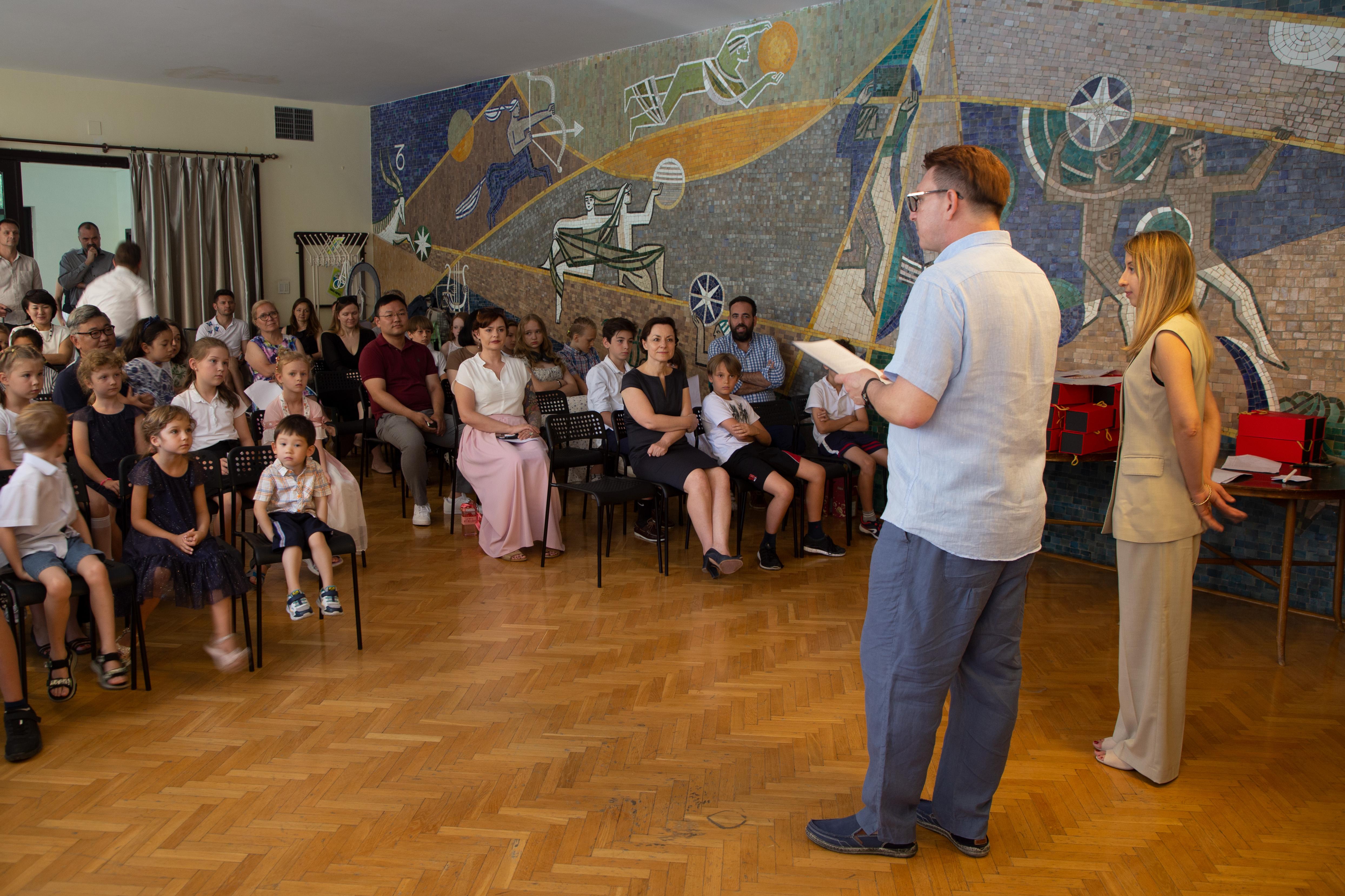 15 czerwca br. w Ambasadzie RP w Pekinie odbyły się obchody zakończenia roku szkolnego w Szkole Polskiej im. Michała Boyma w Pekinie. W uroczystości wzięły udział dzieci ze szkoły podstawowej, średniej oraz z oddziałów dziecięcych, które zostały utworzone we wrześniu 2023 roku.
