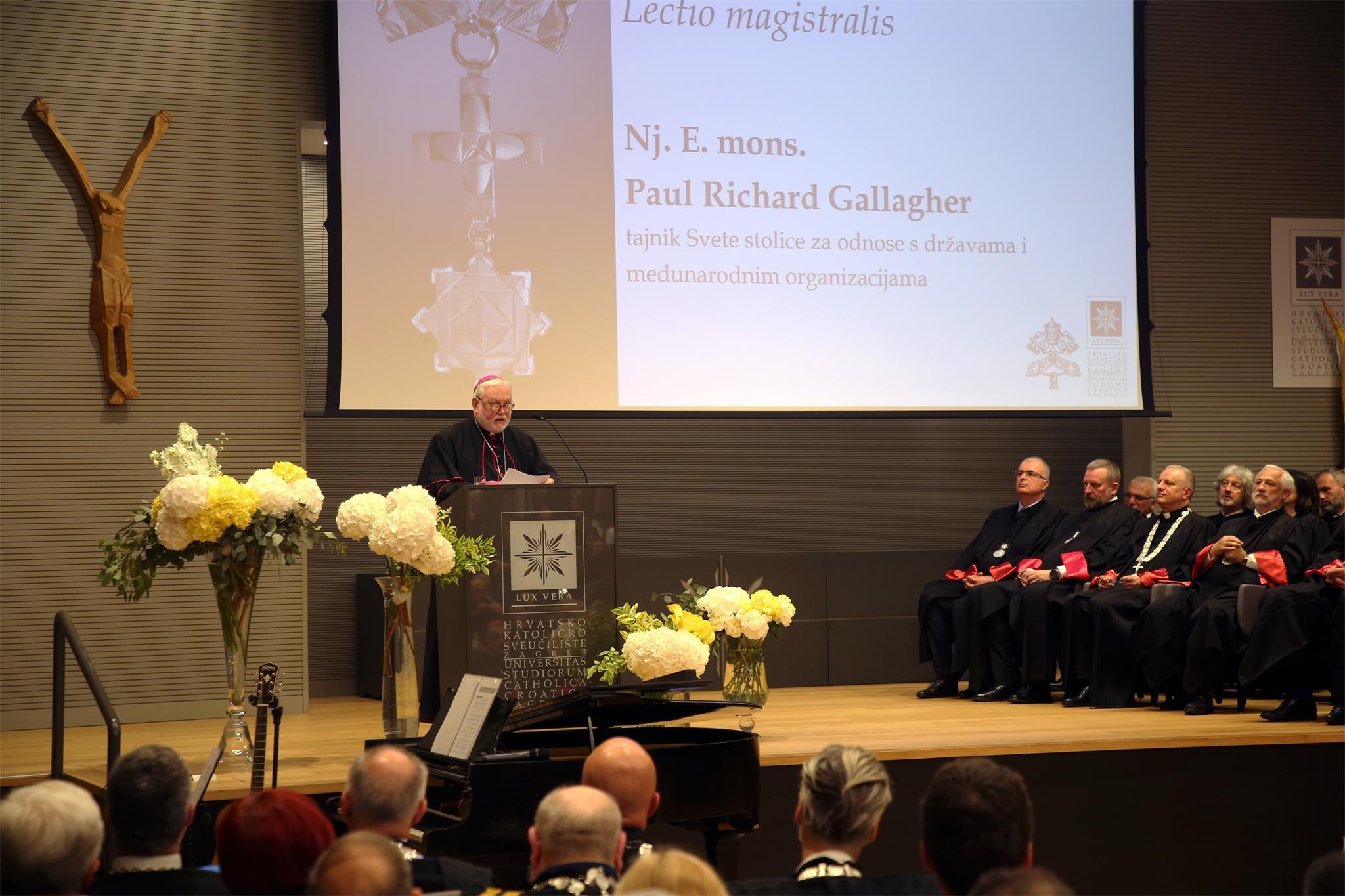 Głównym punktem uroczystości był okolicznościowy wykład (Lectio magistralis) wygłoszony przez abp. P.R.Gallaghera, Sekretarza Stanu (odpowiednik ministra spraw zagranicznych) Stolicy Apostolskiej.