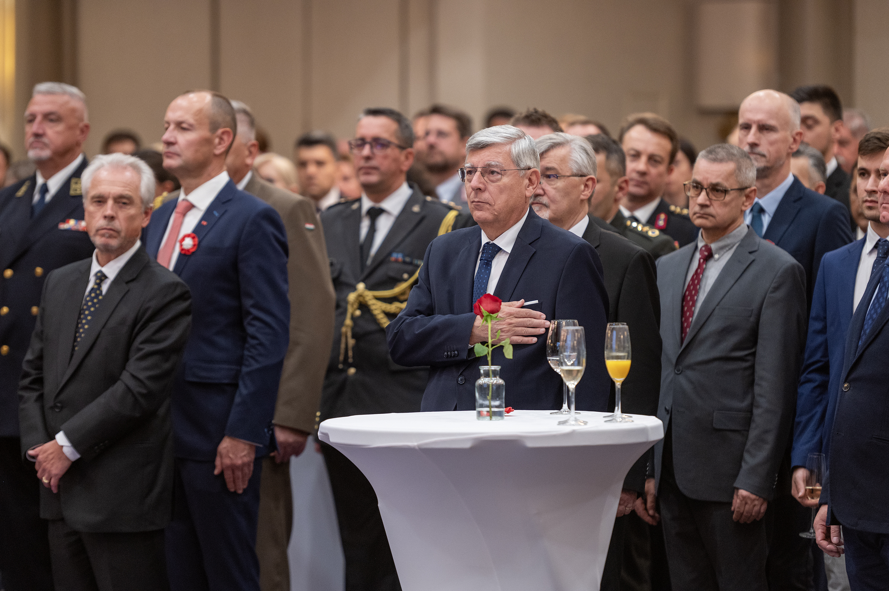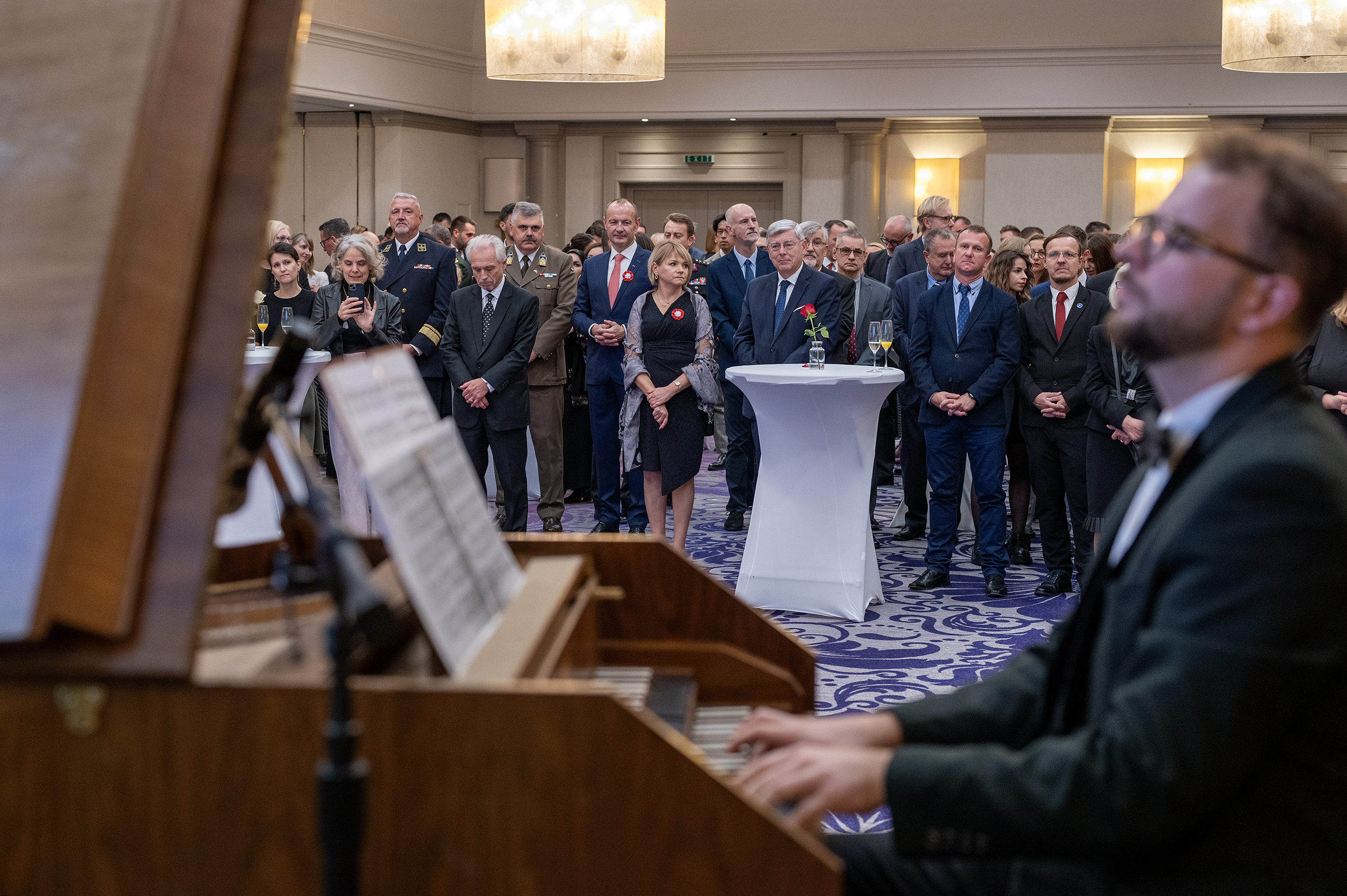 Ambasador Paweł Czerwiński w przemówieniu otwierającym uroczystość skupił się wokół trudnej sytuacji bezpieczeństwa w Europie, będącej wynikiem wciąż trwającej rosyjskiej agresji na Ukrainę. Ambasador P.Czerwiński podkreślił, że „Polska jest krajem frontowym w tym konflikcie” i w związku z tym „musimy zbudować potencjał militarny wystarczająco silny, aby zniechęcić naszych wrogów do wszelkich prób dotknięcia naszej ziemi lub pozbawienia nas wolności”. Ambasador wskazał również na znaczenie oraz rolę członkostwa Polski w Sojuszu Północnoatlantyckim: „wierzymy w potęgę Sojuszu Północnoatlantyckiego, ale nasze stanowisko jest takie, że każdy członek powinien stale zwiększać swój wkład dla dobra zarówno własnego, jak i wspólnego bezpieczeństwa. Polska przeznacza 4,3 proc. swojego PKB na obronę, a w 2025 r. wydatki te wzrosną do 5 proc. Naszym celem jest posiadanie najsilniejszej armii lądowej w Europie”. Jak wyjaśniał w swoim wystąpieniu „nie robimy tego w celu grożenia komukolwiek, ponieważ Polacy znają cenę pokoju, doceniają go i chcą w pokoju żyć. Jednak ustępstwa, kompromisy i deeskalacja za wszelką cenę nie są w żadnym wypadku gwarancją bezpiecznej i pokojowej przyszłości. Dlatego priorytetem polskiej prezydencji w Radzie UE będzie bezpieczeństwo we wszystkich jego wymiarach”.