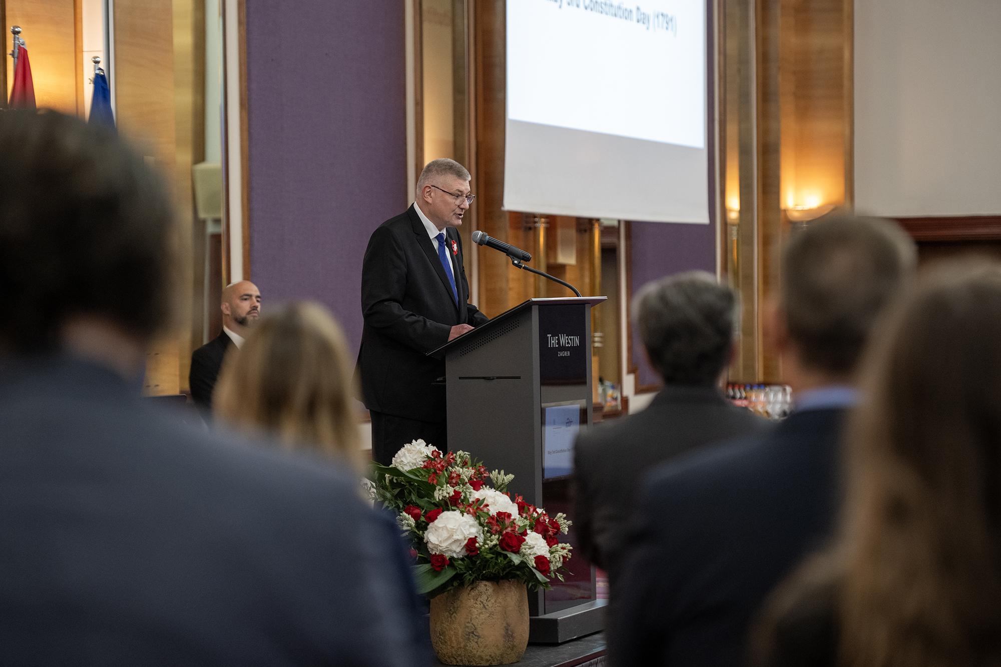 Ambasador Paweł Czerwiński w przemówieniu otwierającym uroczystość przybliżył zebranym trudne okoliczności polityczne towarzyszące uchwaleniu historycznego aktu prawnego. Ambasador podkreślił, że przyjęcie przez Sejm Wielki ustawy zasadniczej było „symbolem odrzucenia słabości oraz wyrazem mądrej i śmiałej wizji reform”. Przypominał jednocześnie, że „zaledwie cztery lata później Polska została wymazana z mapy Europy, a nasz naród utracił własną państwowość na długie 123 lata”. Jak zauważył Ambasador, sens „obchodzenia rocznicy przyjęcia Konstytucji, która de facto nie zaczęła nawet w pełni obowiązywać” najlepiej oddaje fakt, że „wszyscy zewnętrzni ciemiężyciele - od ościennych mocarstw, które dokonały rozbioru Polski w XVIII wieku, po nazistowskich i sowieckich najeźdźców z czasu II wojny światowej, a następnie narzucony nam reżim komunistyczny, zawzięcie dążyli do skazania święta 3 Maja na zapomnienie, surowo zabraniali organizacji wszelkich obchodów i brutalnie prześladowali tych, którzy odważyli się to zrobić”.