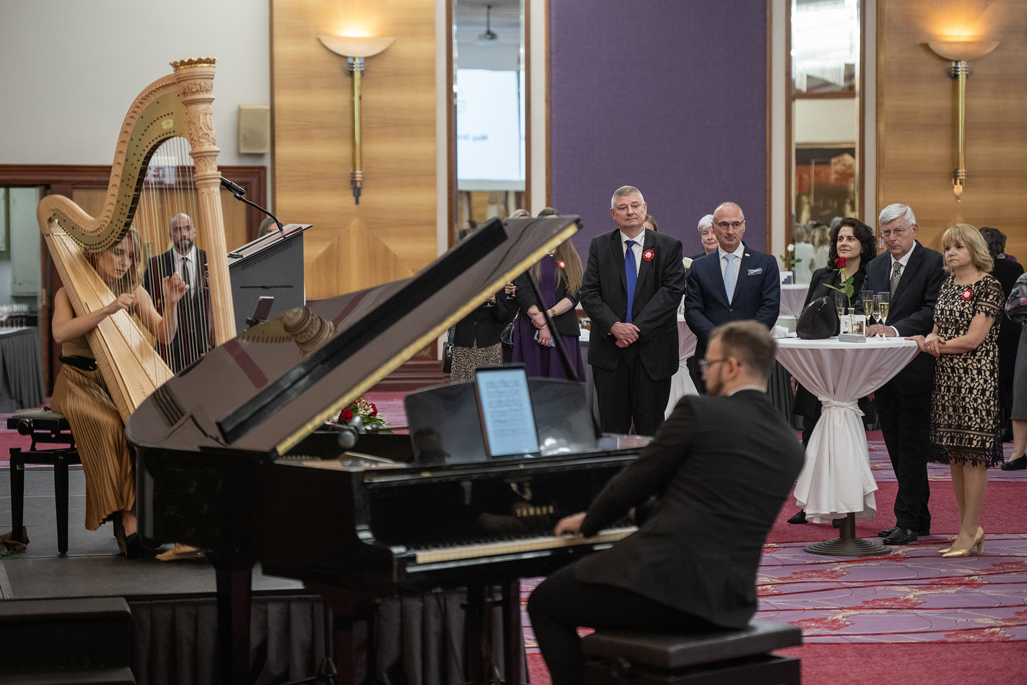 Wydarzenie uświetnił występ duetu harfowo-fortepianowego młodych polskich artystów, rodzeństwa Stanisława i Julii Łopuszyńskich.