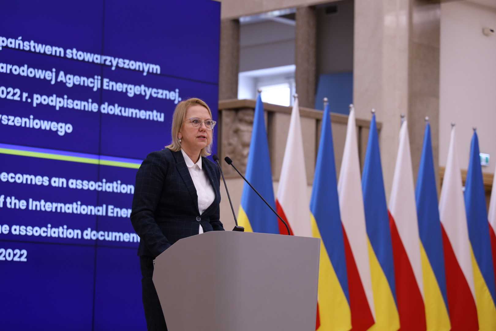“Welcoming Ukraine as the associated country to the IEA family gives the powerful message of solidarity and support. This will contribute to the increased energy security in our region. We also hope that this event will form a basis for establishing a framework supporting Ukraine on its way to recovery” – emphasized the Minister of Climate and Environment Anna Moskwa during the ceremony of signing the association document between Ukraine and the International Energy Agency. This event attended by the Executive Director of IEA Fatih Birol, Ukrainian Minister of Energy German Galushchenko and Deputy Minister of Climate and Environment Anna Łukaszewska-Trzeciakowska was held on 19 July 2022 in Warsaw.