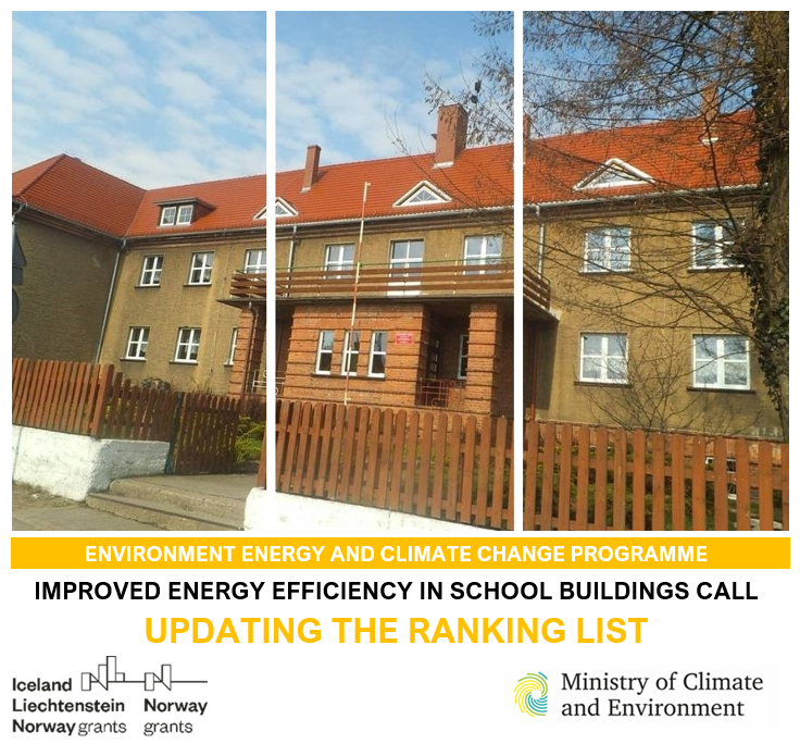Operator of the Programme Environment, Energy and Climate Change informs about the extension of the main list of projects selected under the call Improved energy efficiency in school buildings.