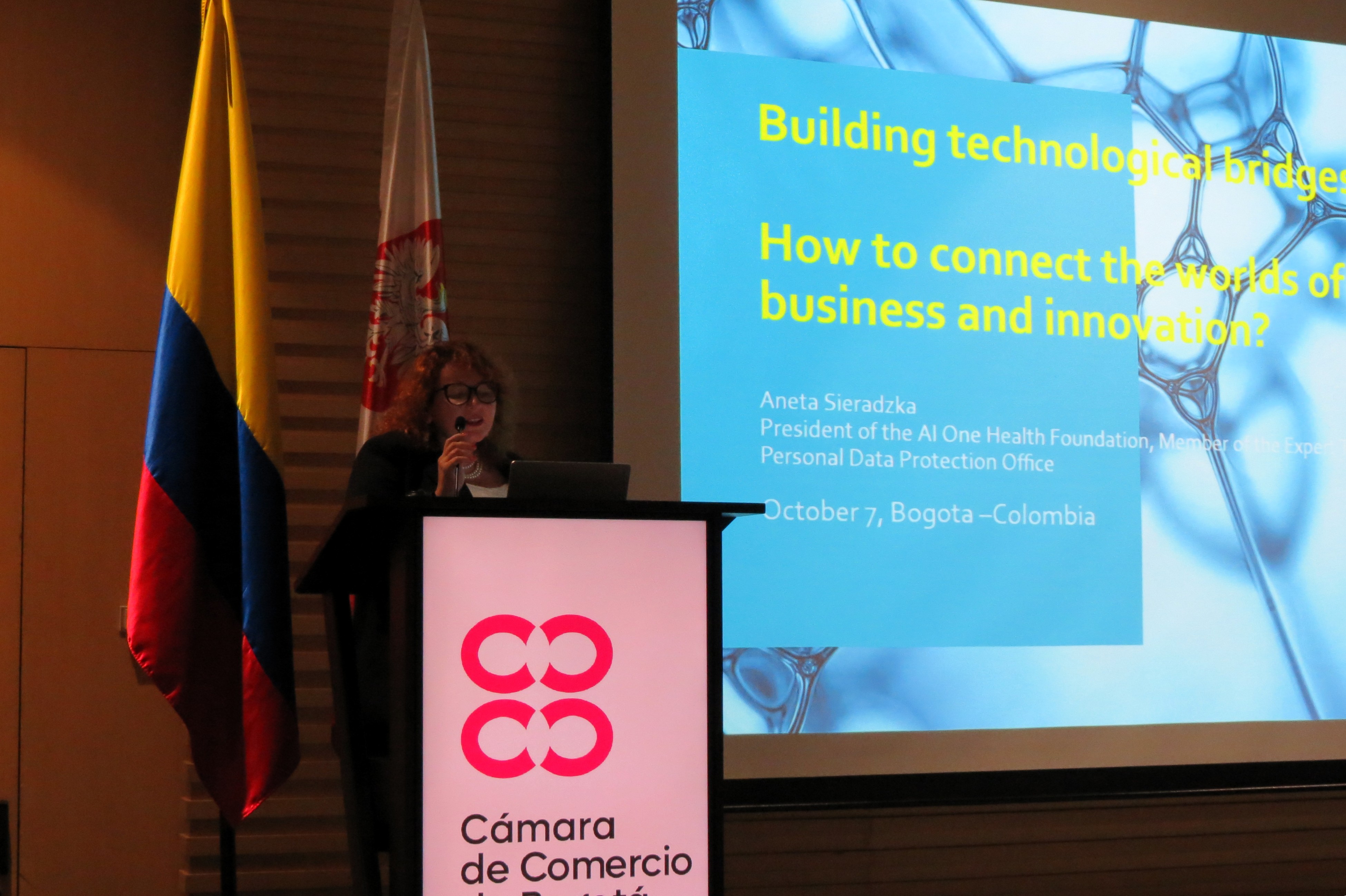 El foro, organizado por la Embajada de Polonia en Colombia y el Clúster de Salud de la Cámara de Comercio de Bogotá, con el apoyo de la Agencia Polaca de Inversiones y Comercio (PAIH), tuvo como propósito principal dar a conocer las innovaciones polacas más interesantes en materia de digitalización y uso de inteligencia artificial en la práctica médica y abrir espacios de diálogo para la cooperación polaco-colombiana en este campo. La bienvenida la hizo la Embajadora de Polonia, Barbara Sośnicka, tras unas palabras de la Sra. Ana María Mejía, Coordinadora de Relacionamiento Internacional de la Cámara de Comercio de Bogotá, sede del evento.