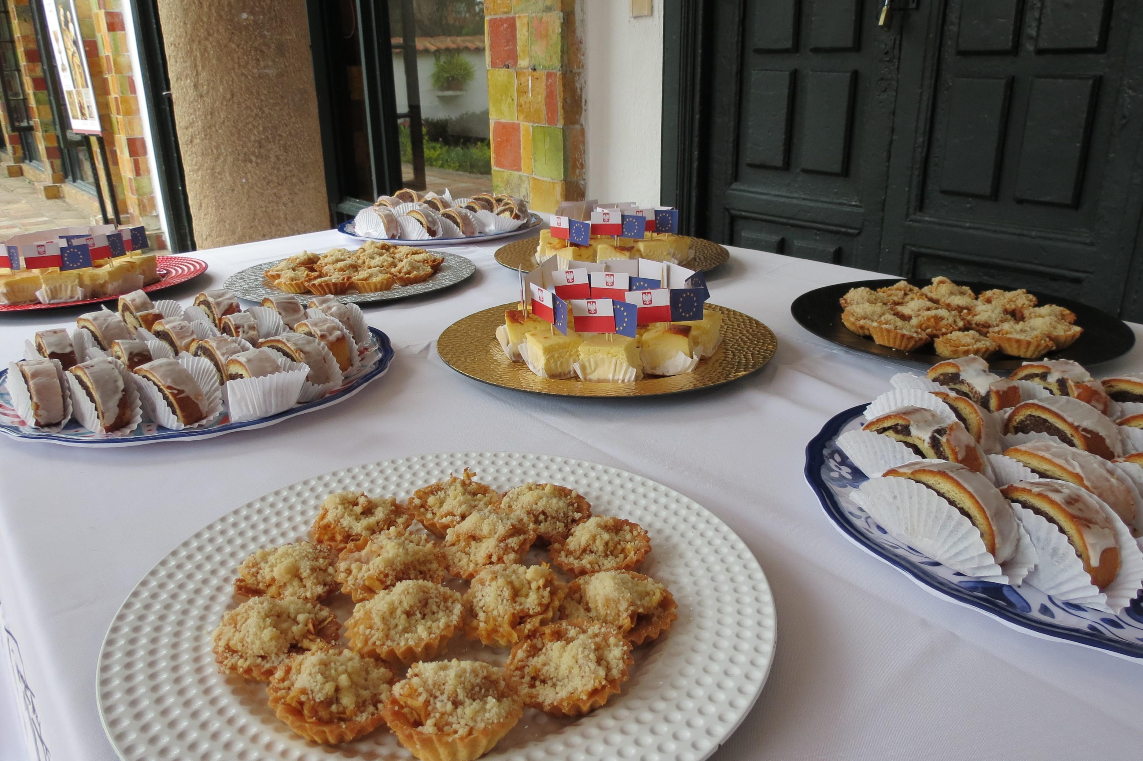 Durante la recepción, los invitados tuvieron la oportunidad de degustar platos típicos polacos, incluidos postres tradicionales como el pastel de manzana, la torta de queso y el rollo de semillas de amapola. También pudieron ver una película promocional sobre Polonia y la exposición "Tesoros de Cracovia", que presenta la riqueza histórica y los monumentos de la antigua capital de Polonia.