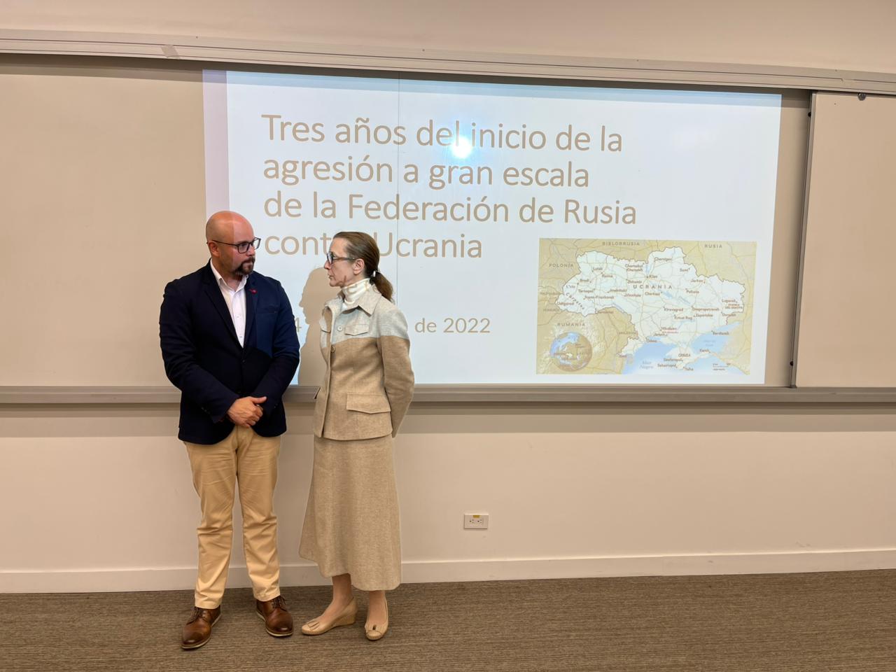 La Encargada de Negocios a.i. de la República de Polonia en Colombia, Barbara Sośnicka, dictó una conferencia sobre el tercer aniversario de la invasión rusa a Ucrania para estudiantes de relaciones internacionales.